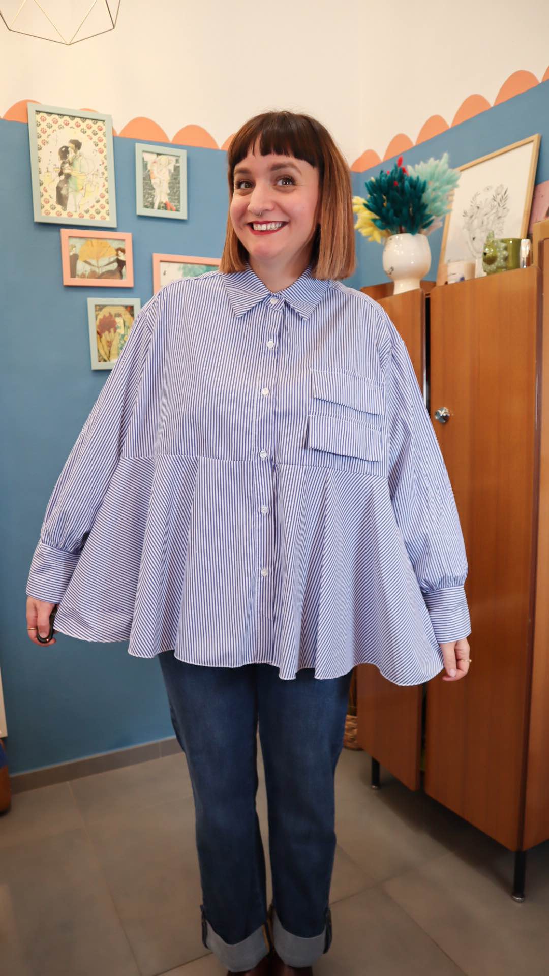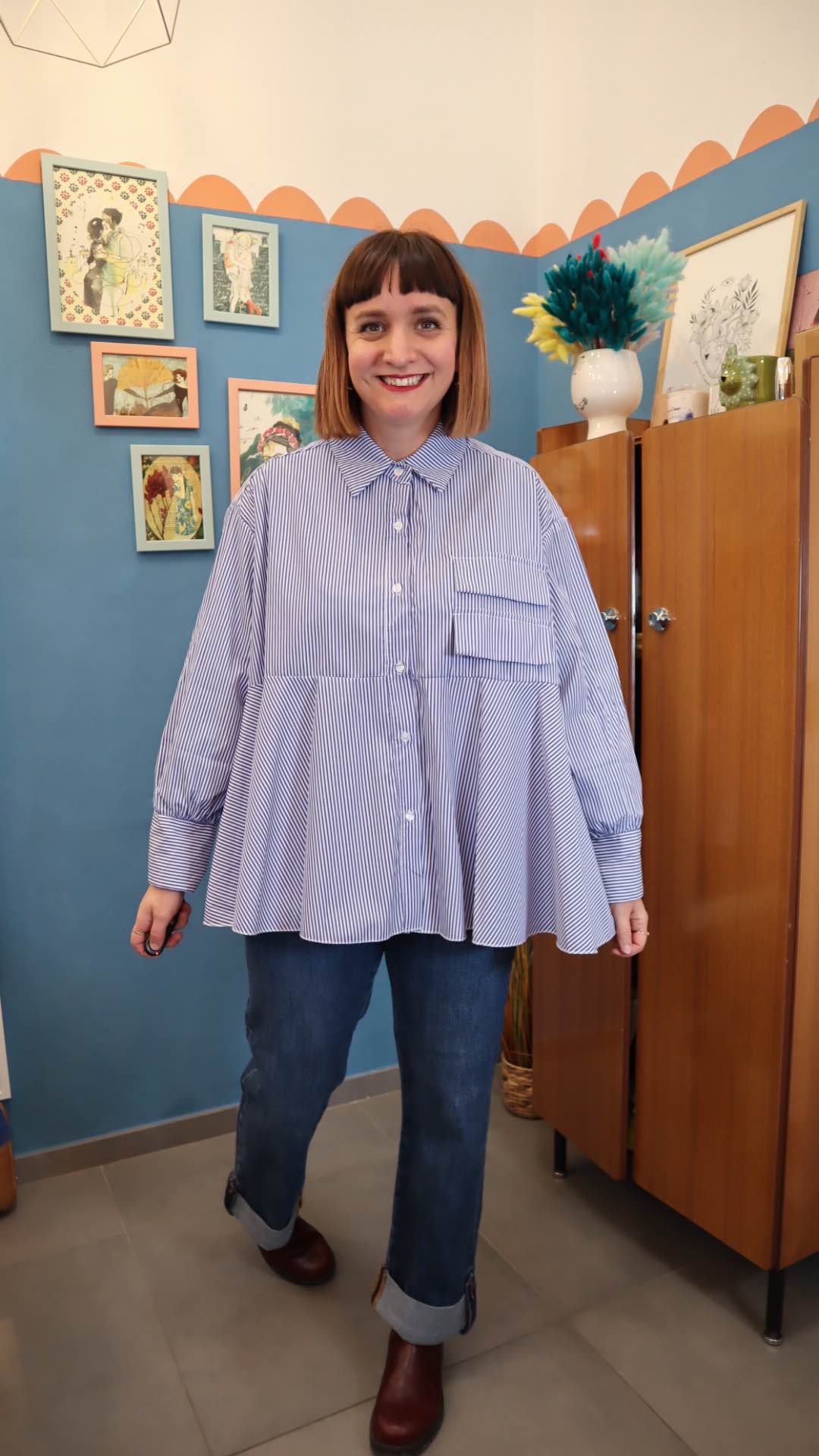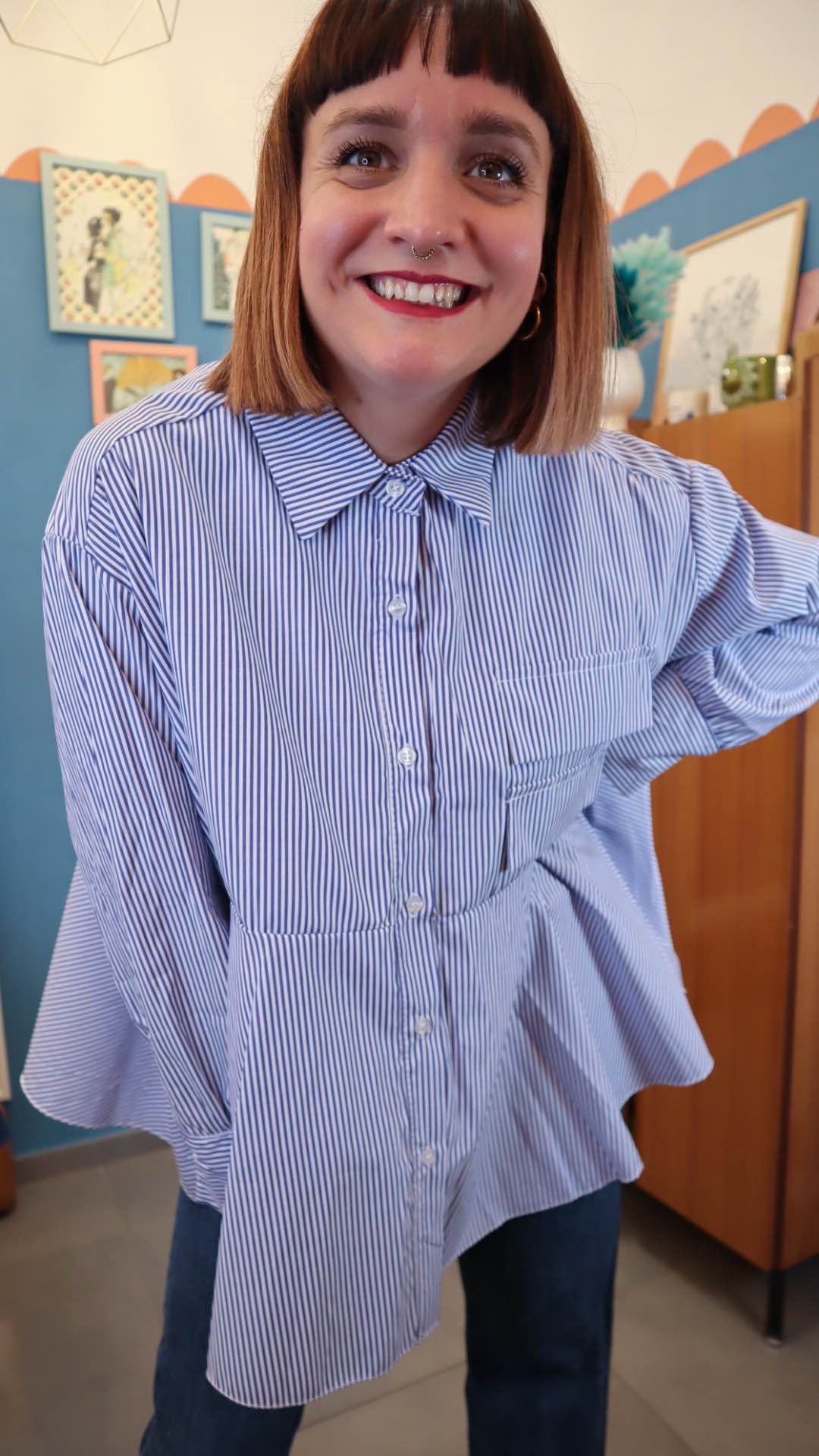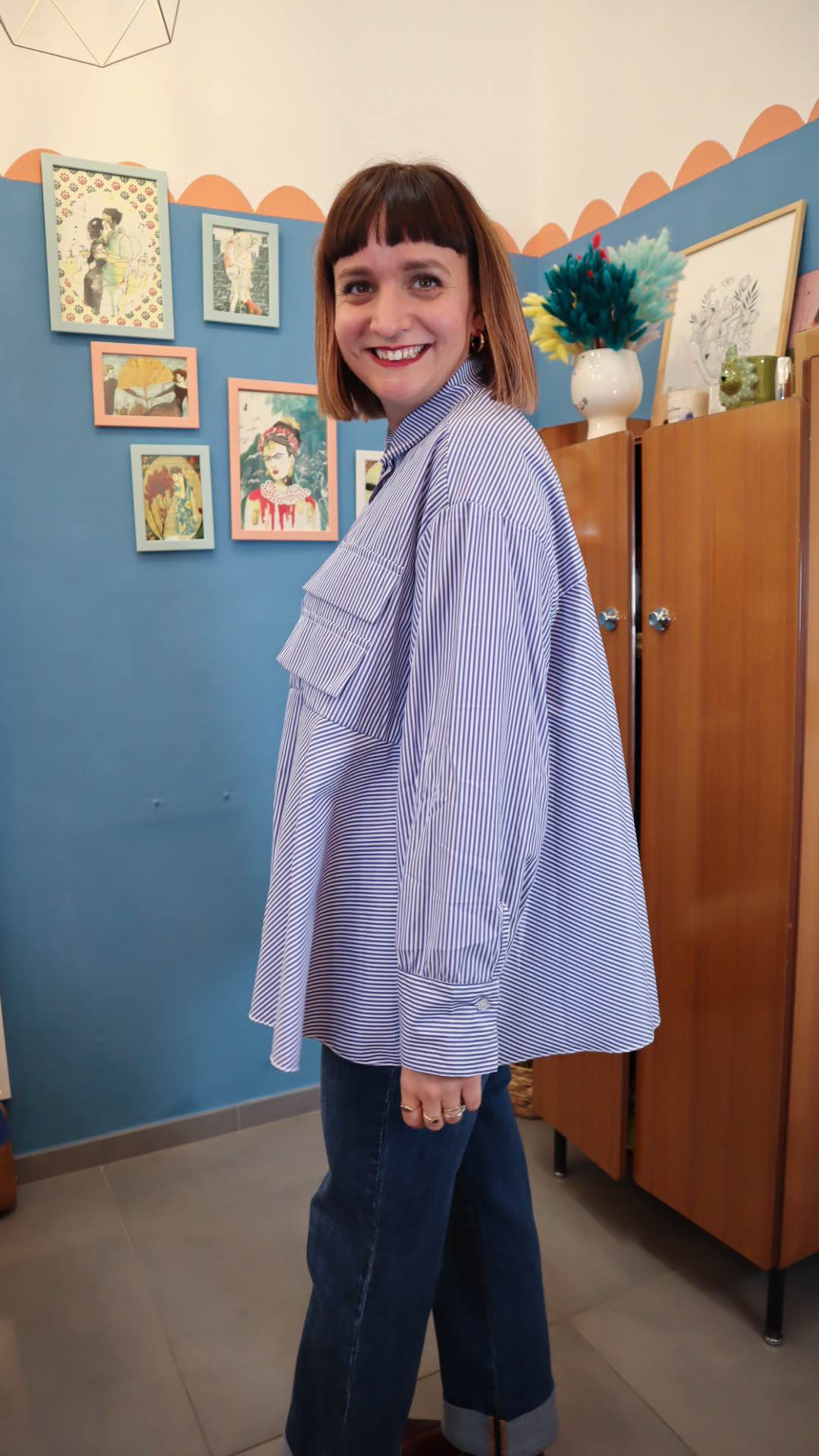Camicia oversize con balza sul punto vita.Taschino sul seno