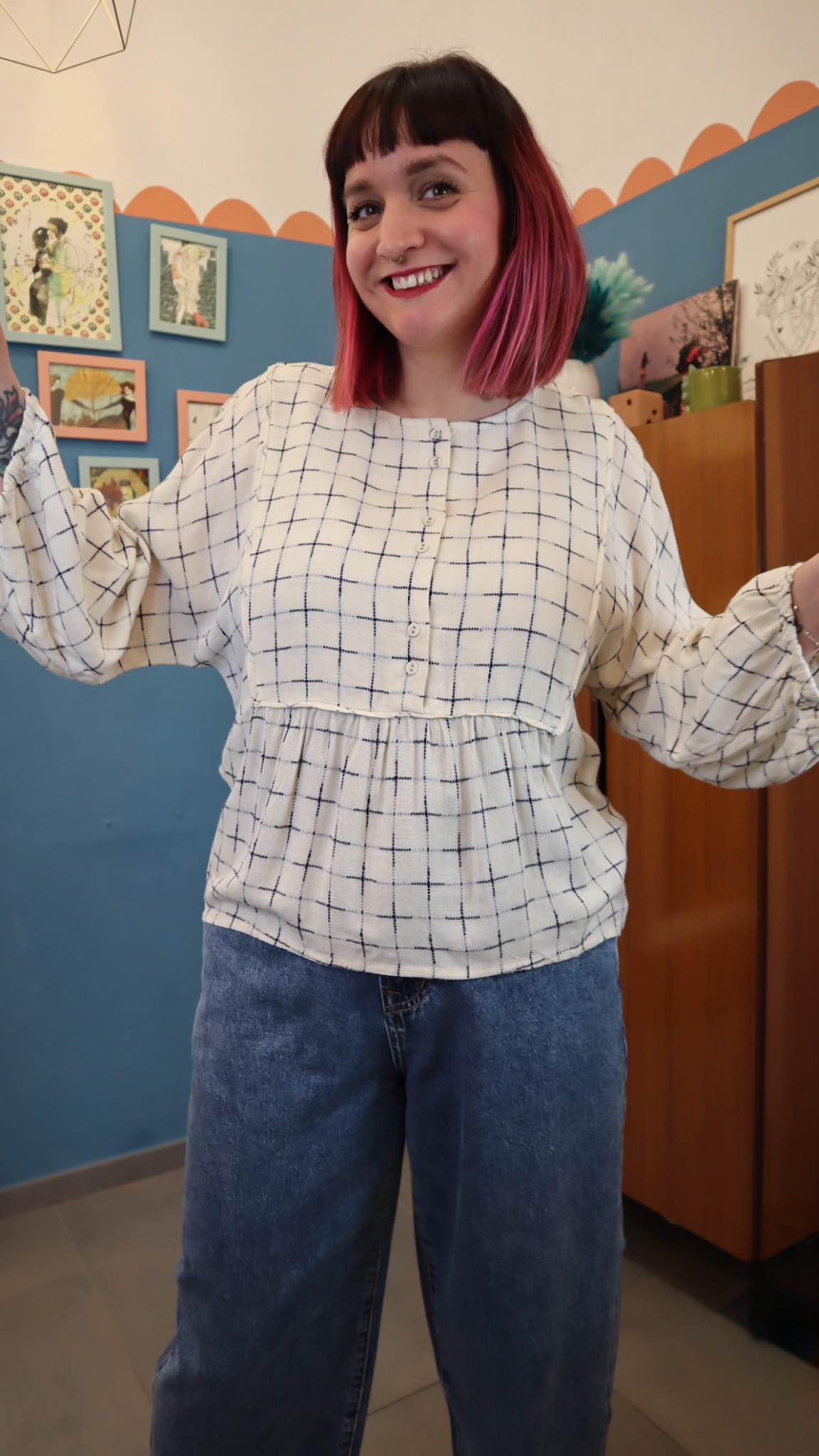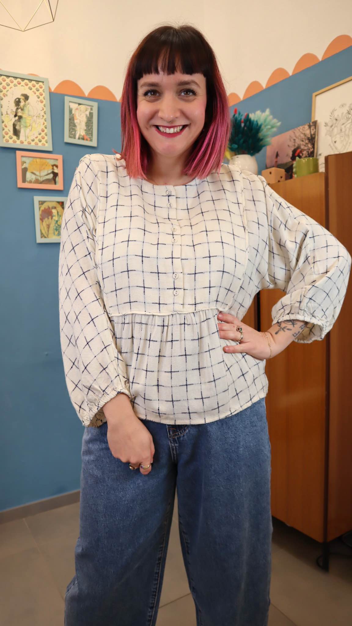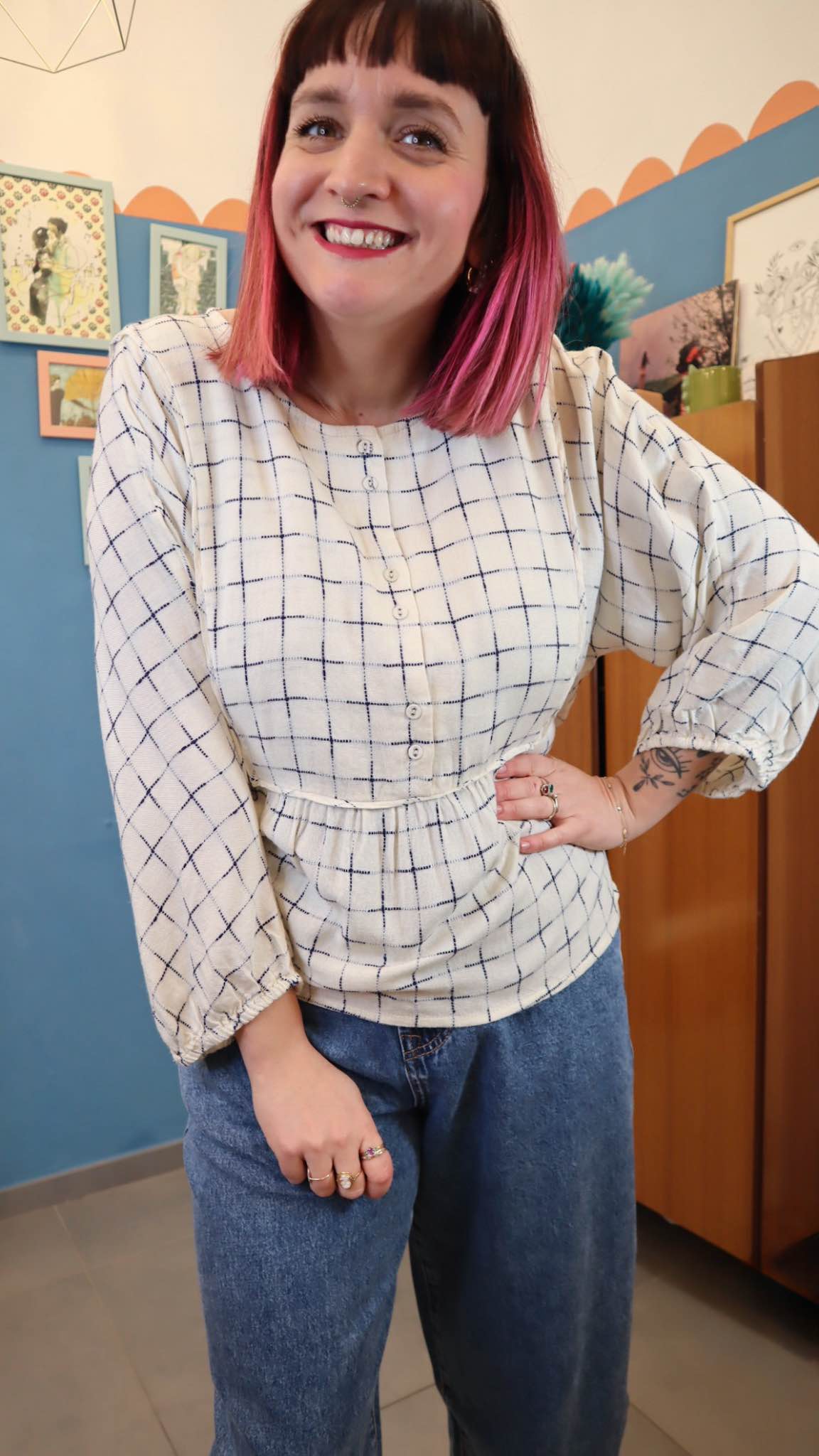 Camicia in 88% viscosa 14%lino. Arricciatura sul punto vita, polsino con elastico