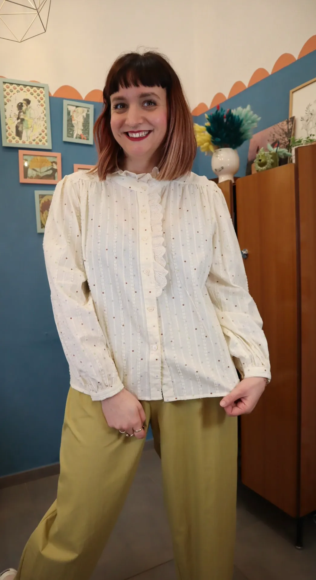 Camicia in 100% cotone. Manica ampia con Rouches nel colletto.