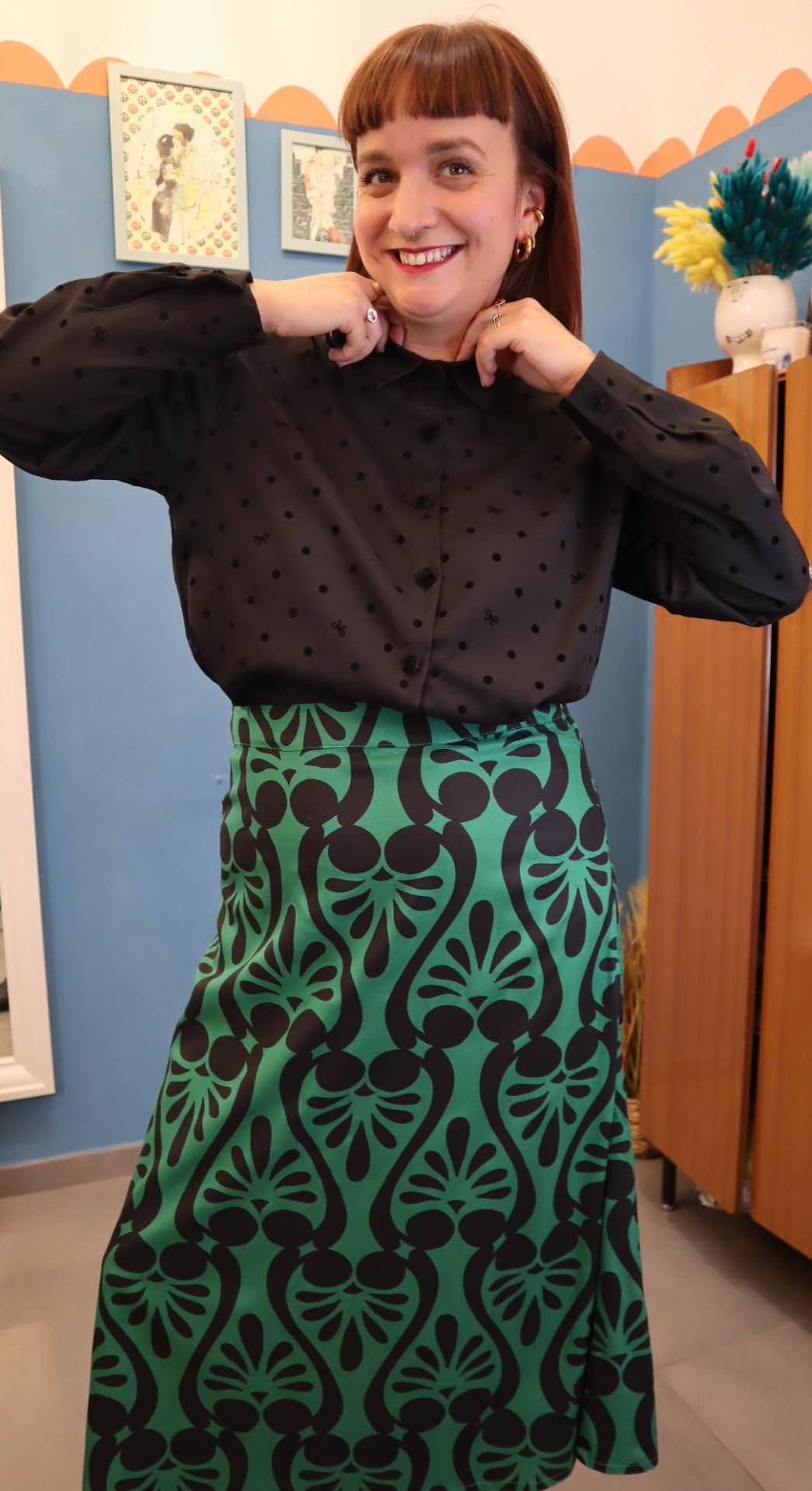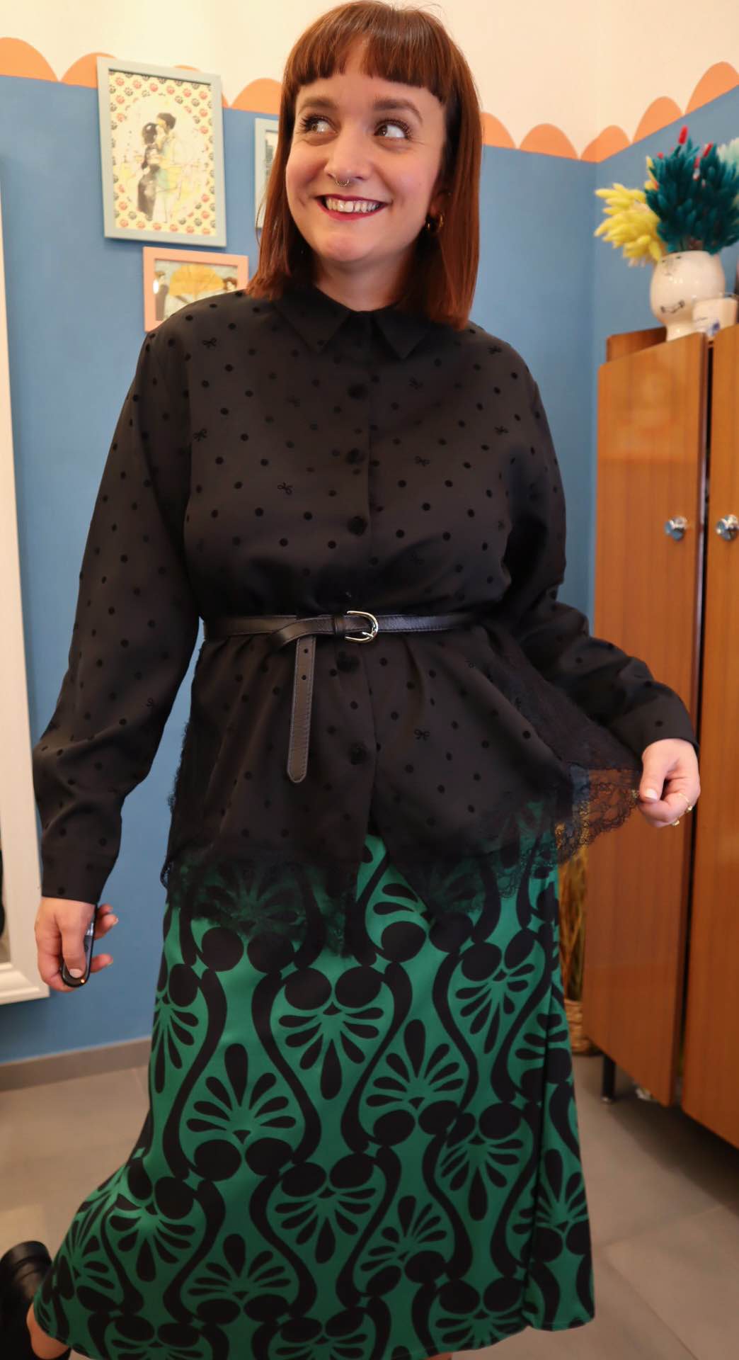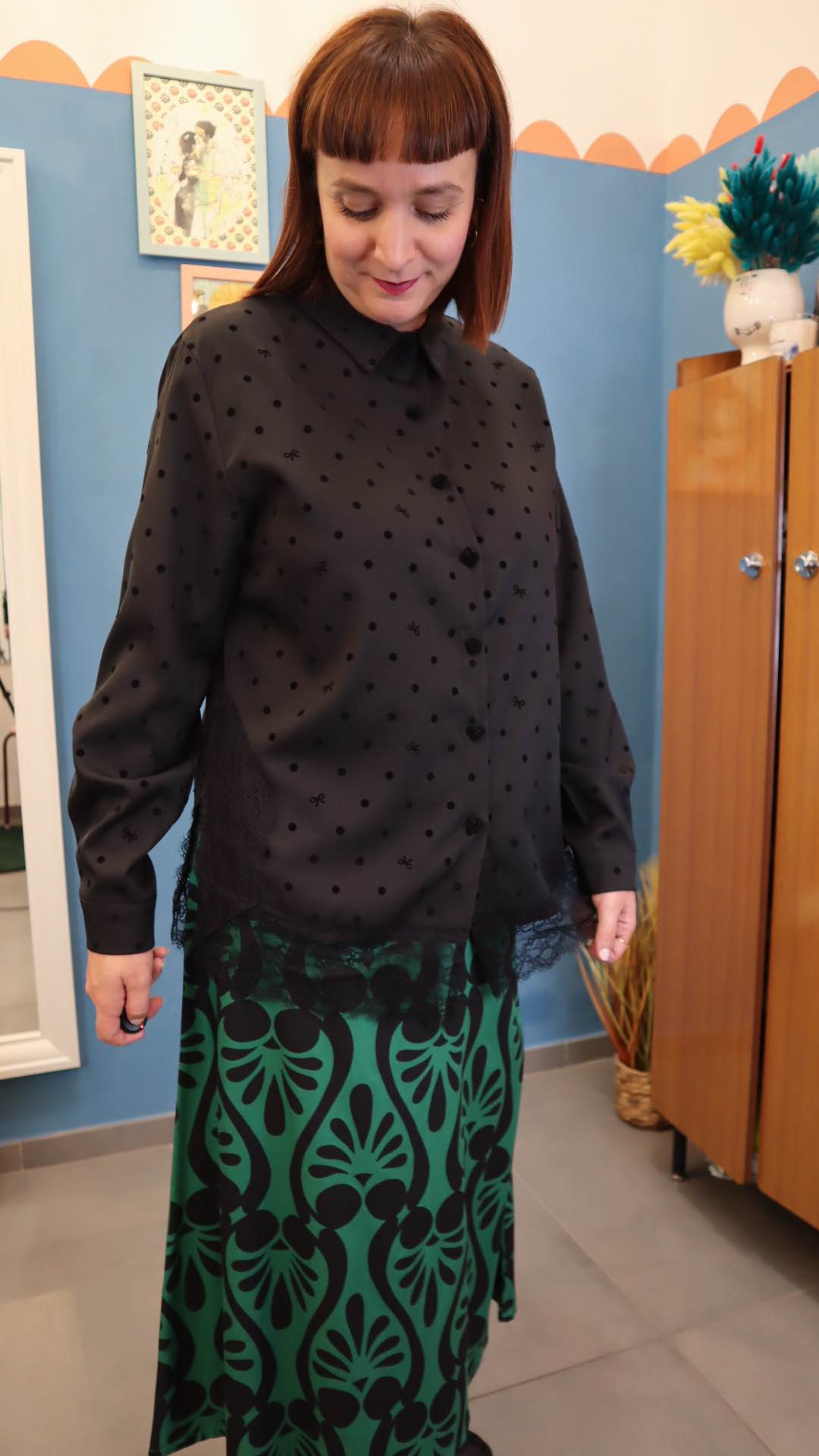 Camicia in 50% viscosa e 50% poliestere. Dettagli in rilievo in velluto, Spacchi laterali con inserti in pizzo