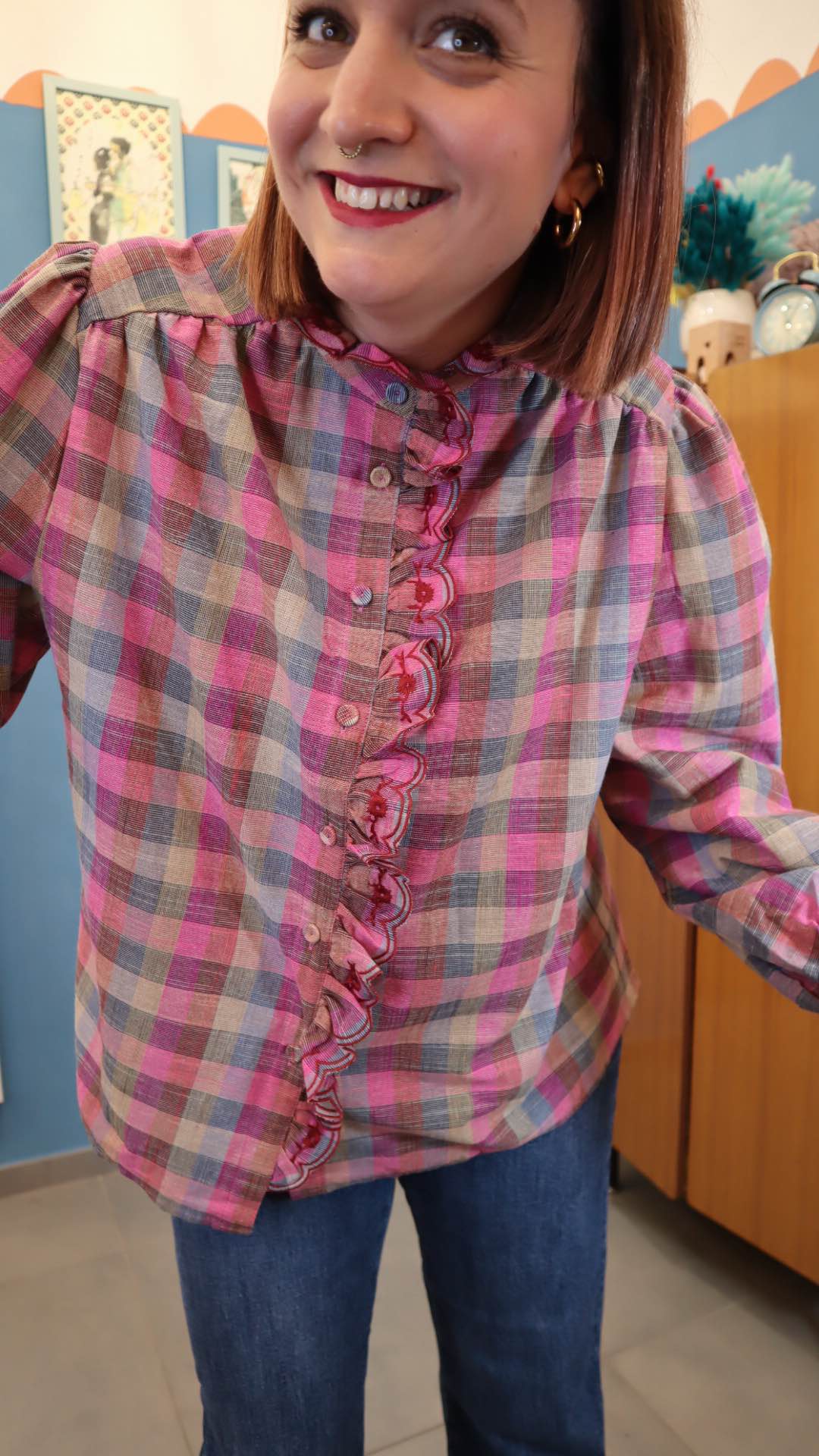 Camicia in cotone .Dettaglio Rouches ricamato.