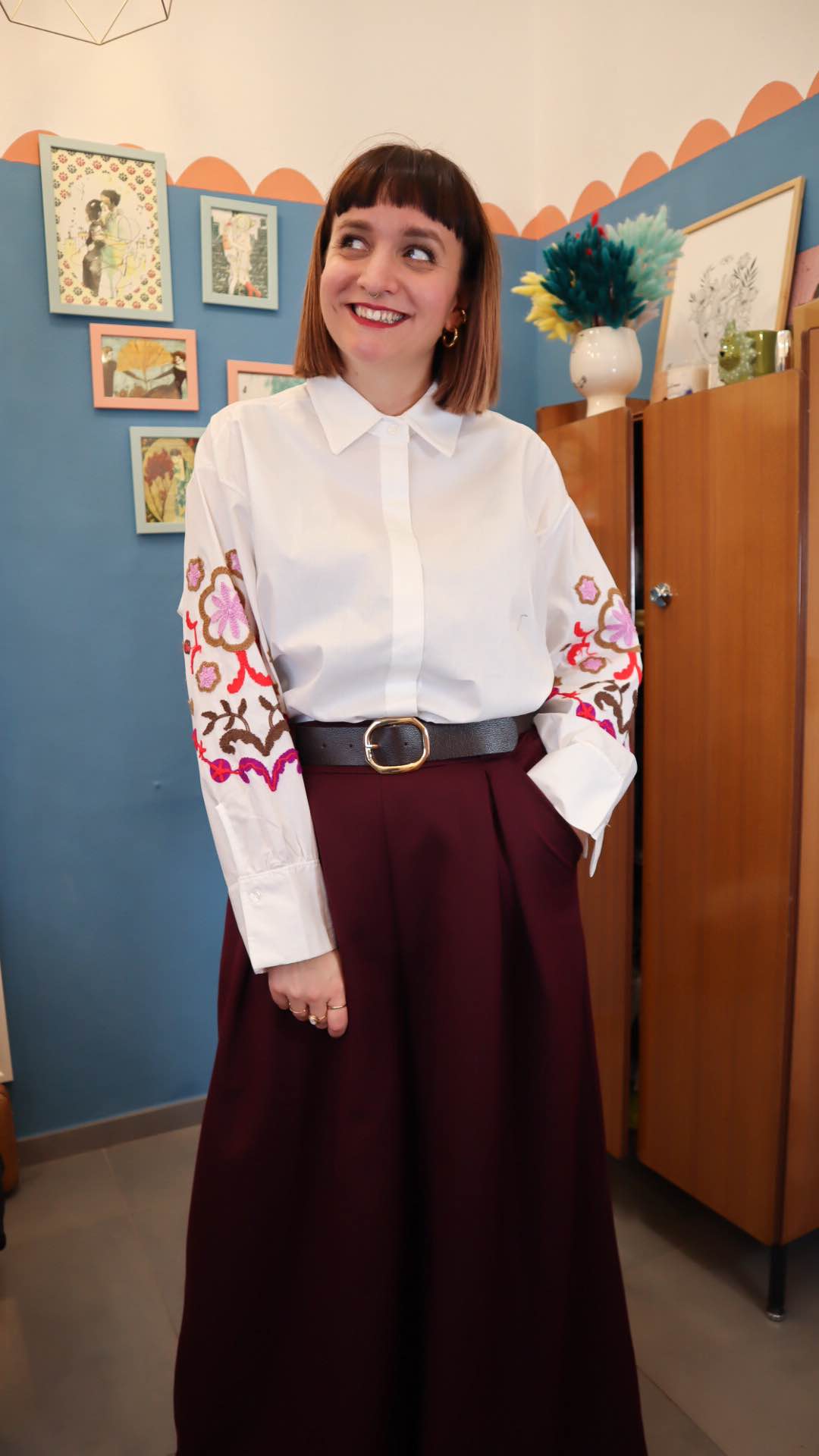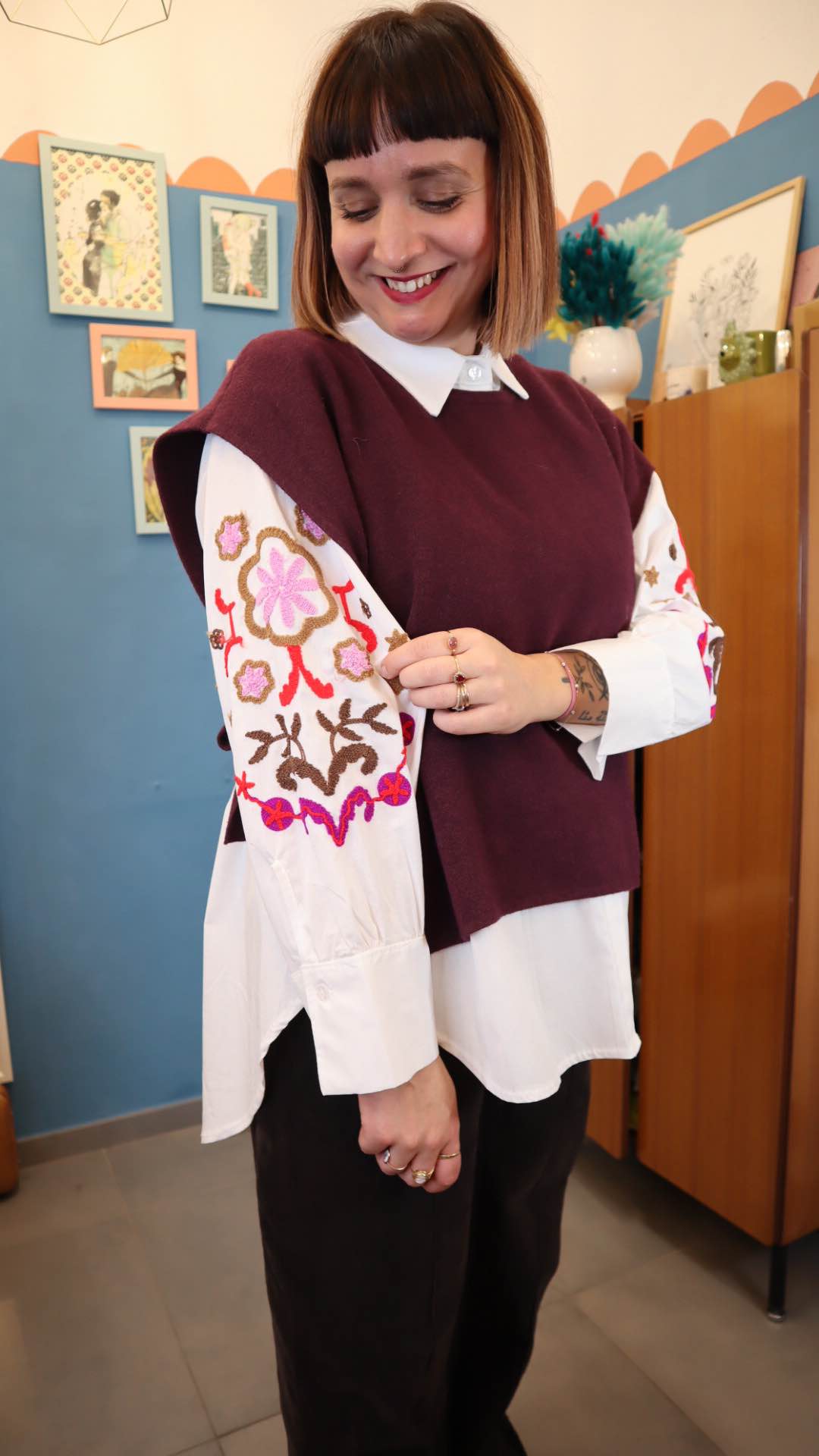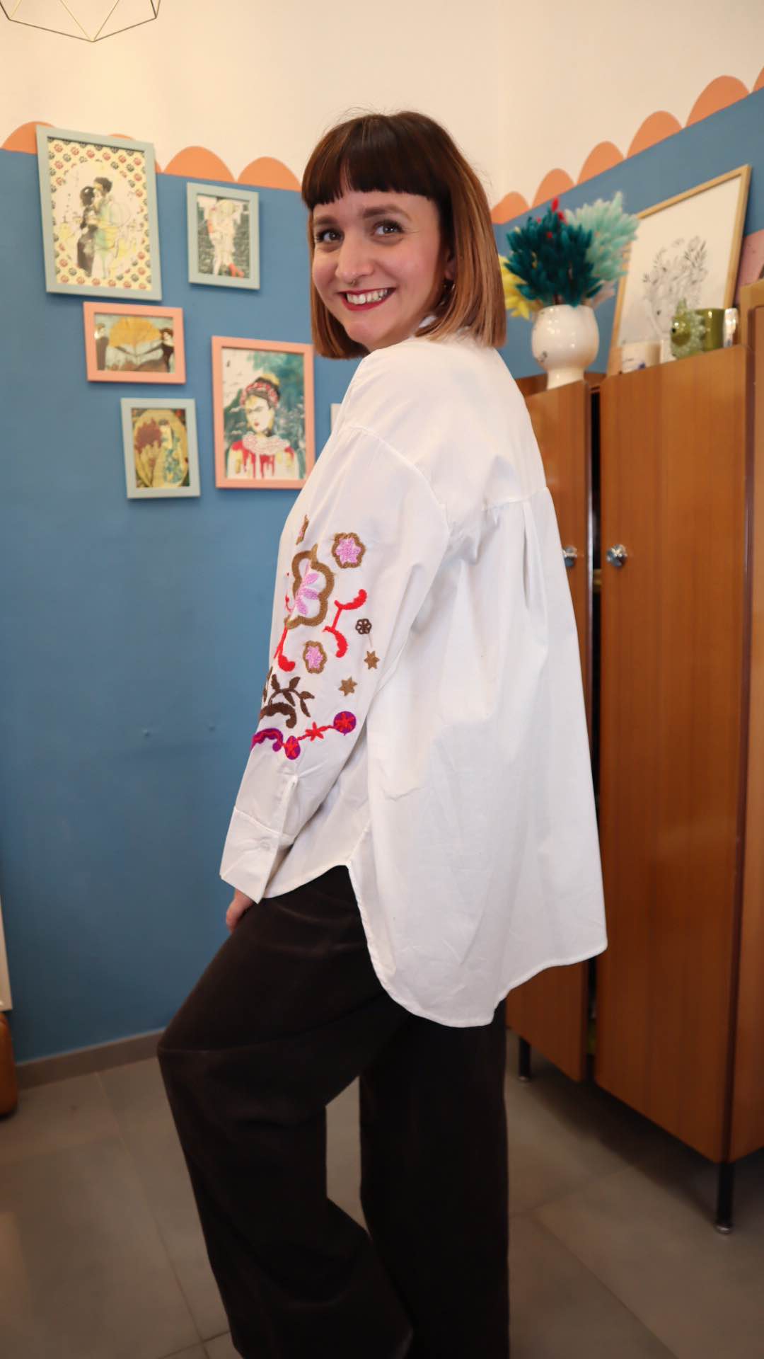 Camicia oversize in cotone con dettaglio ricamato.Modello ampio con parte posteriore piรน lunga