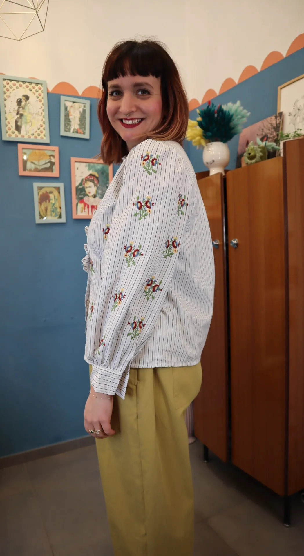 Camicia in 100% cotone.  Rouches nel colletto, dettagli ricamati
