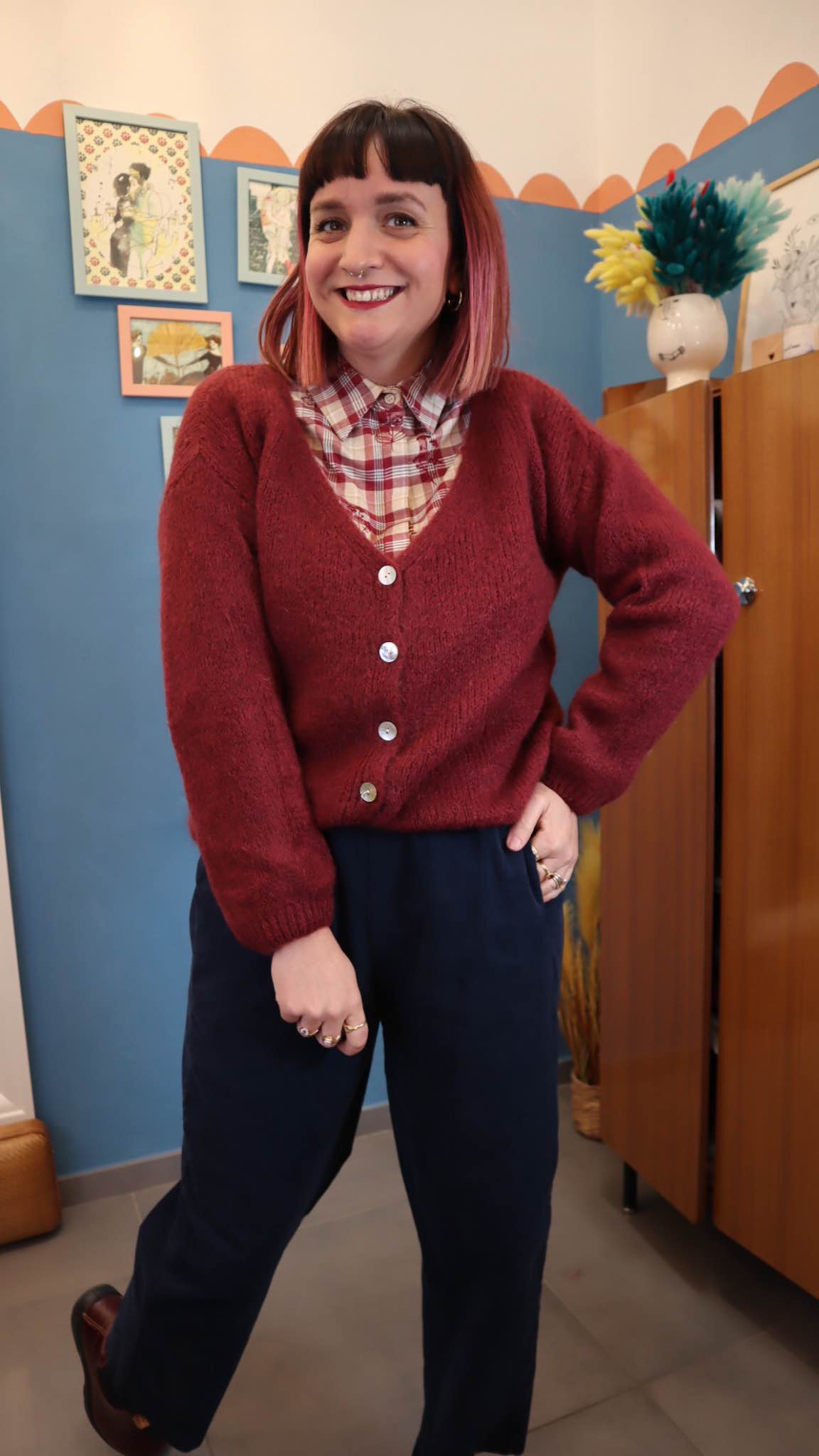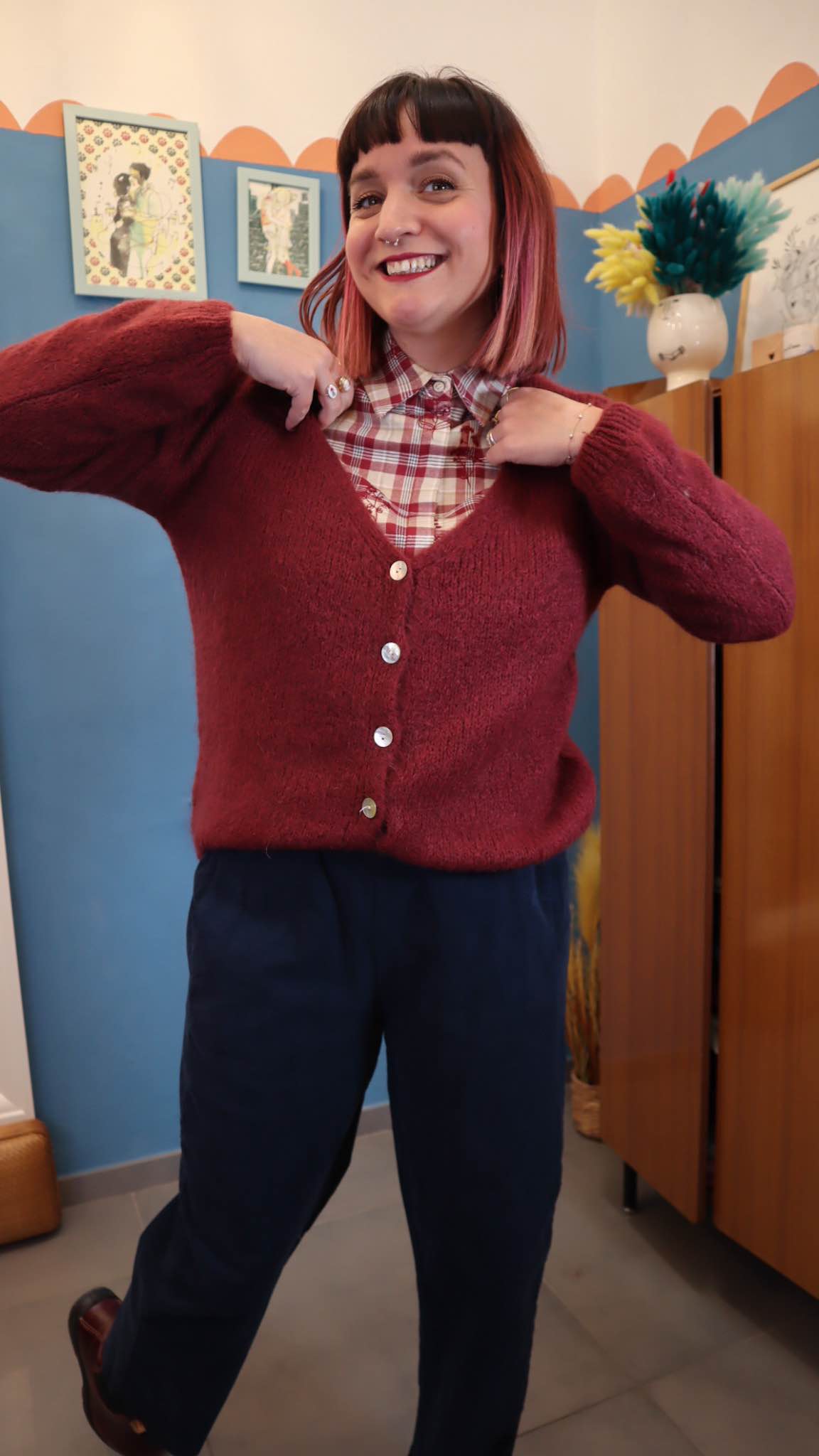 cardigan in acrilico 20% kid mohair 10% lana. Scollo a V , bottoni in madreperla