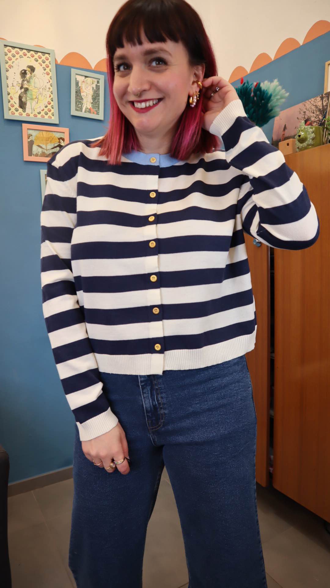 Cardigan in 60% acrilico 10% lino 30% lyocel. Modello leggermente crop