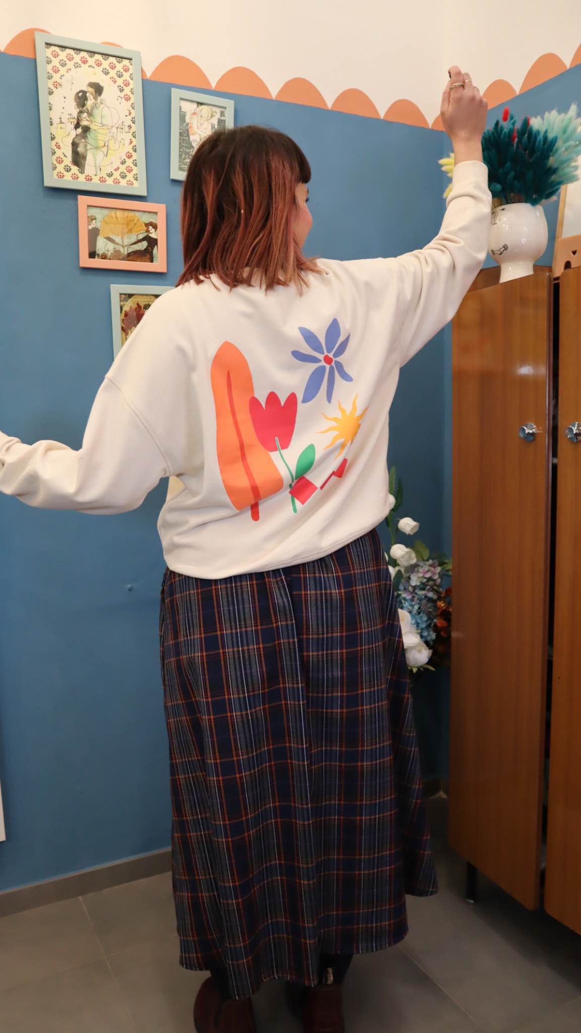 Felpa in 70% cotone 30% poliestere. Vestibilitร  comoda. Stampa nella parte posteriore