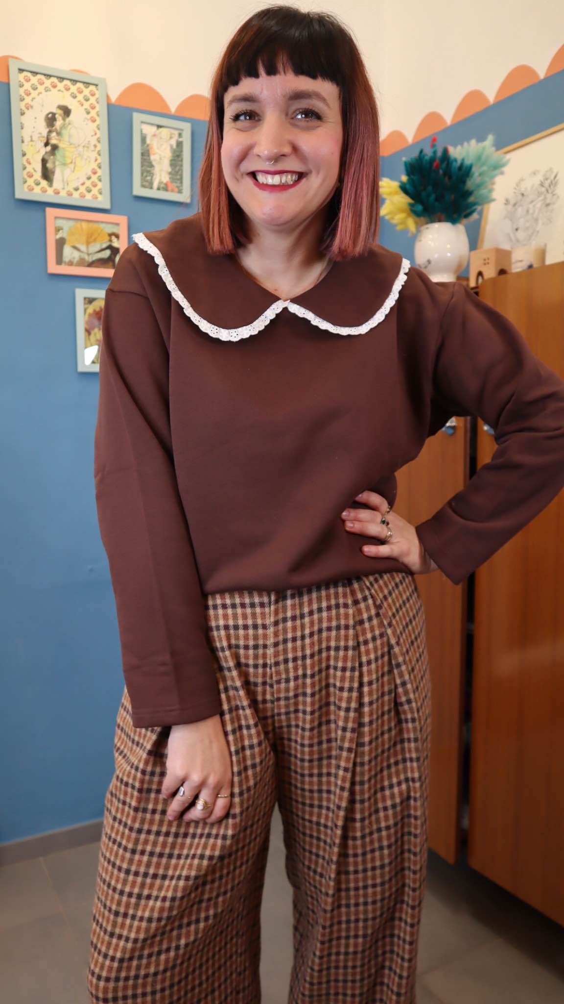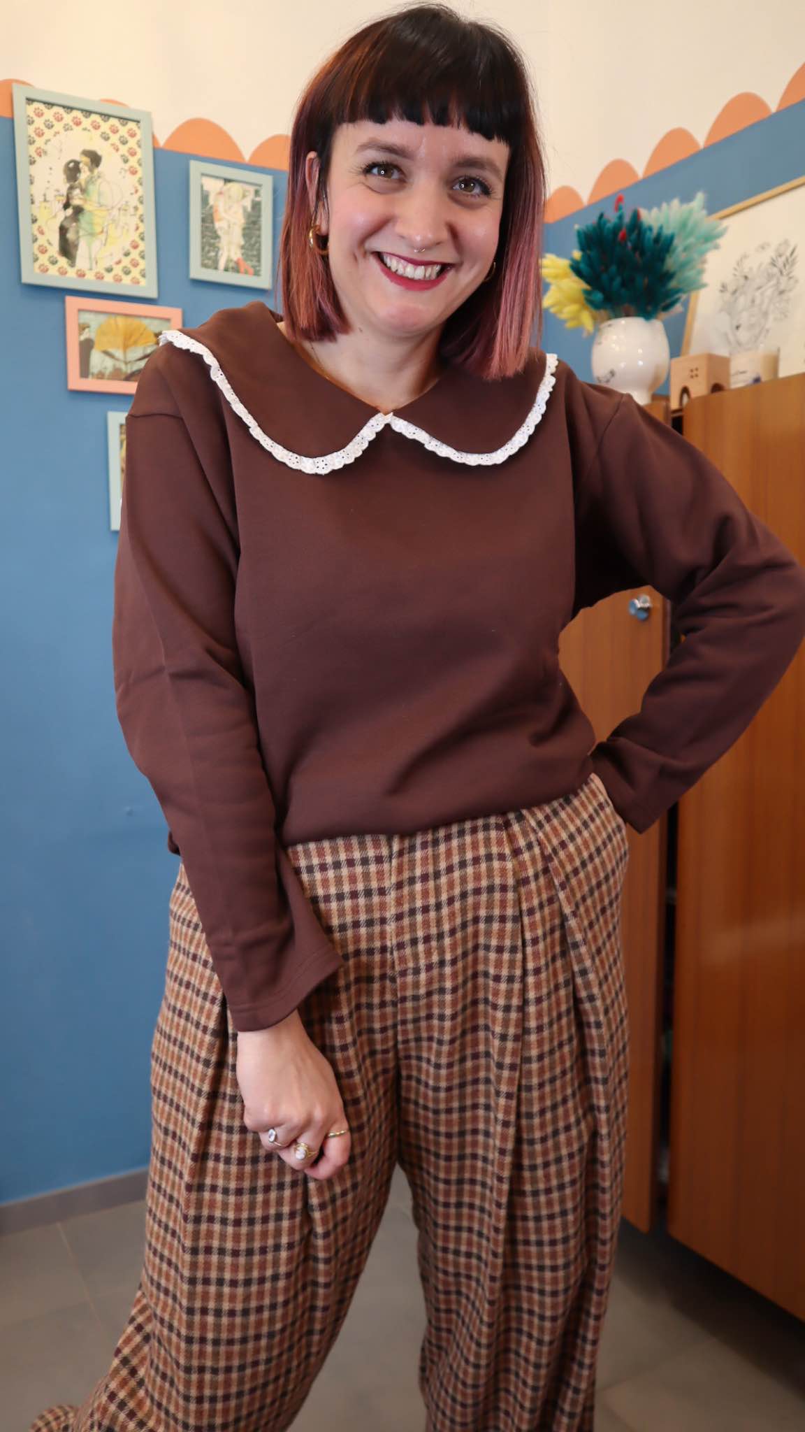 Felpa in cotone garzato con dettaglio colletto. Vestibilità comoda