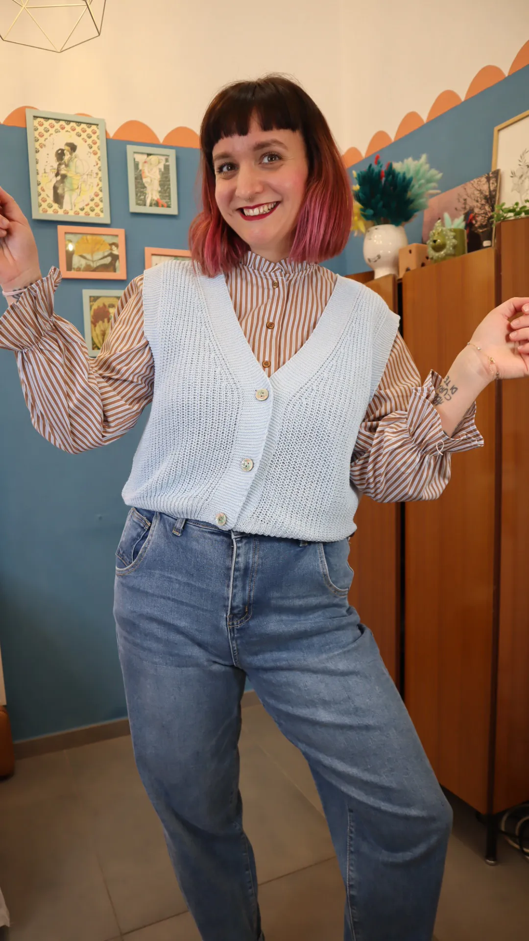 Gilet  in 50% cotone  50% acrilico con bottoni madreperla.Scollo a v