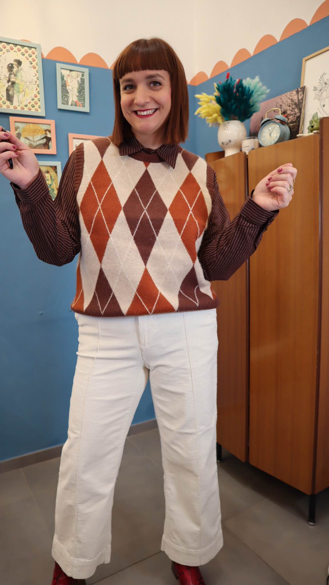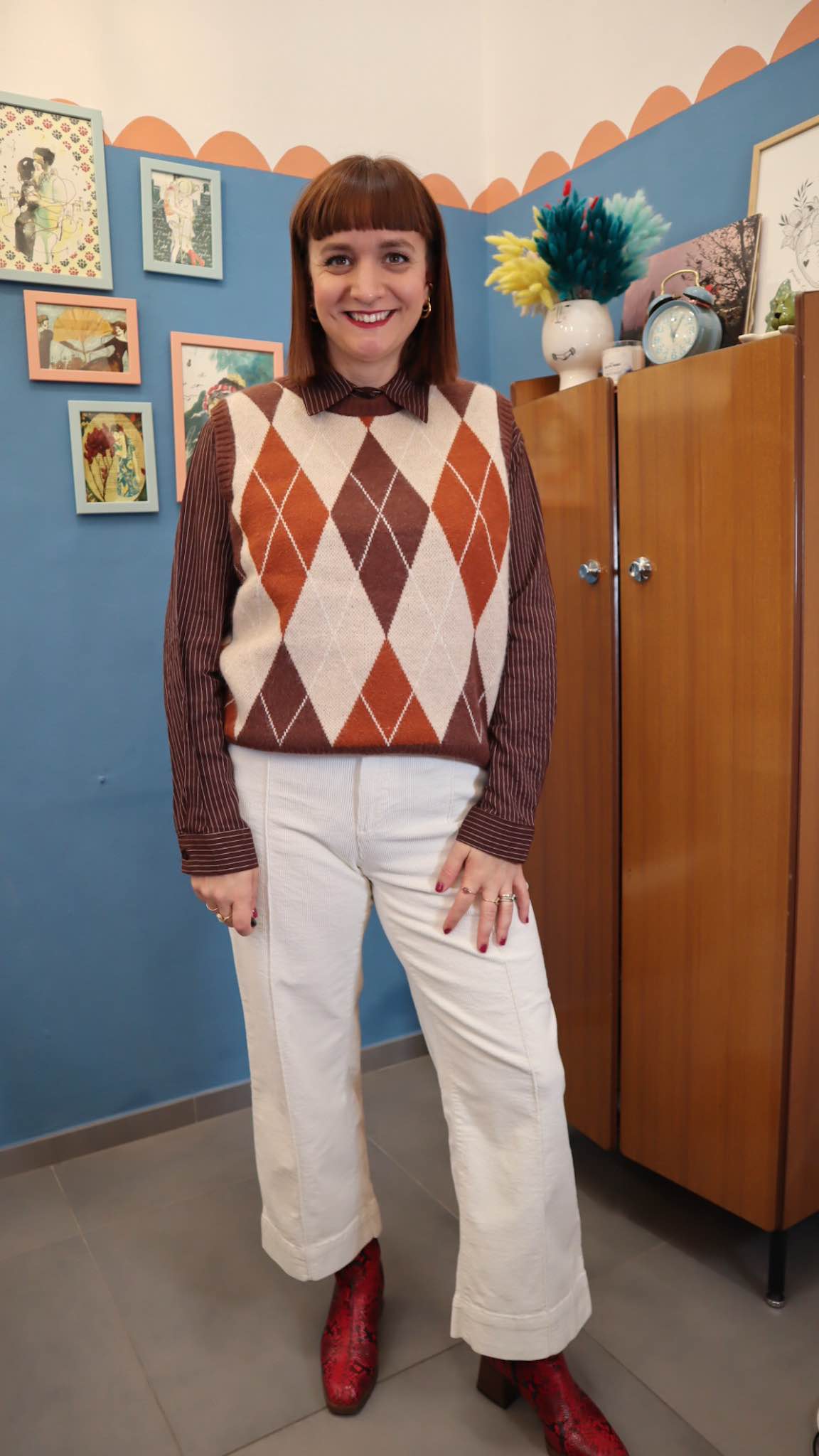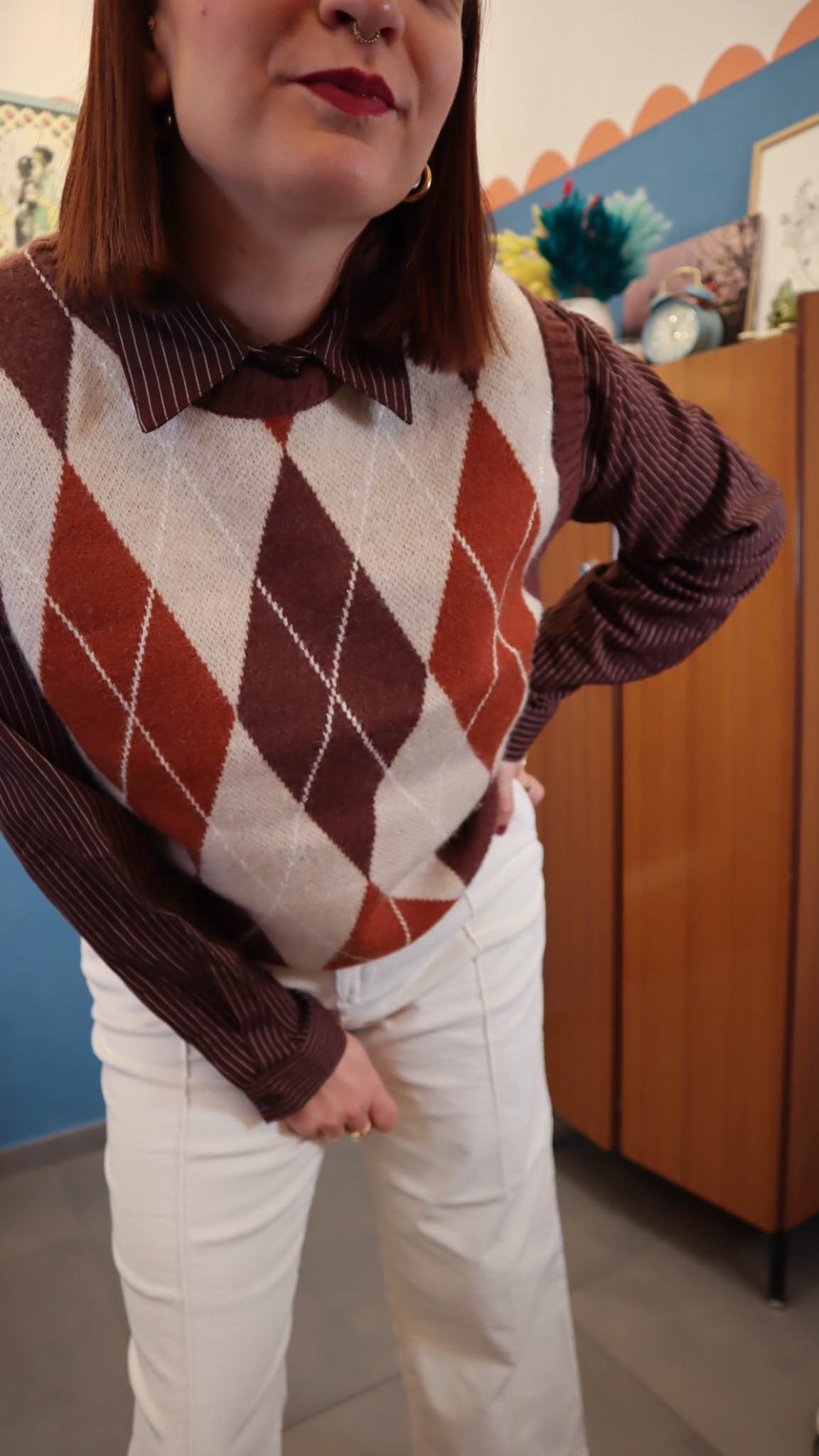 Gilet in 70% acrilico 28% viscosa 1%lurex. Modello a scatoletta
