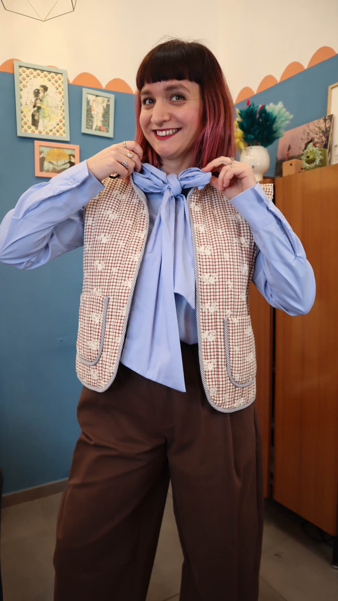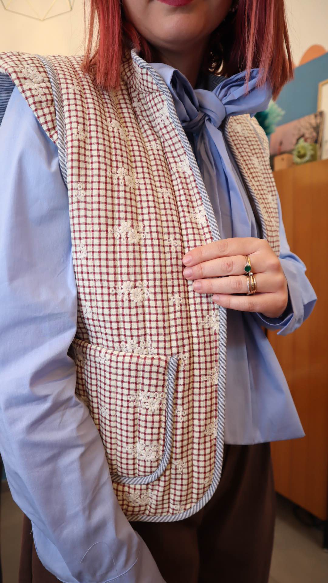 Gilet in 80%cotone 20% poliestere con dettagli ricamati. Leggermente imbottito, con tasche