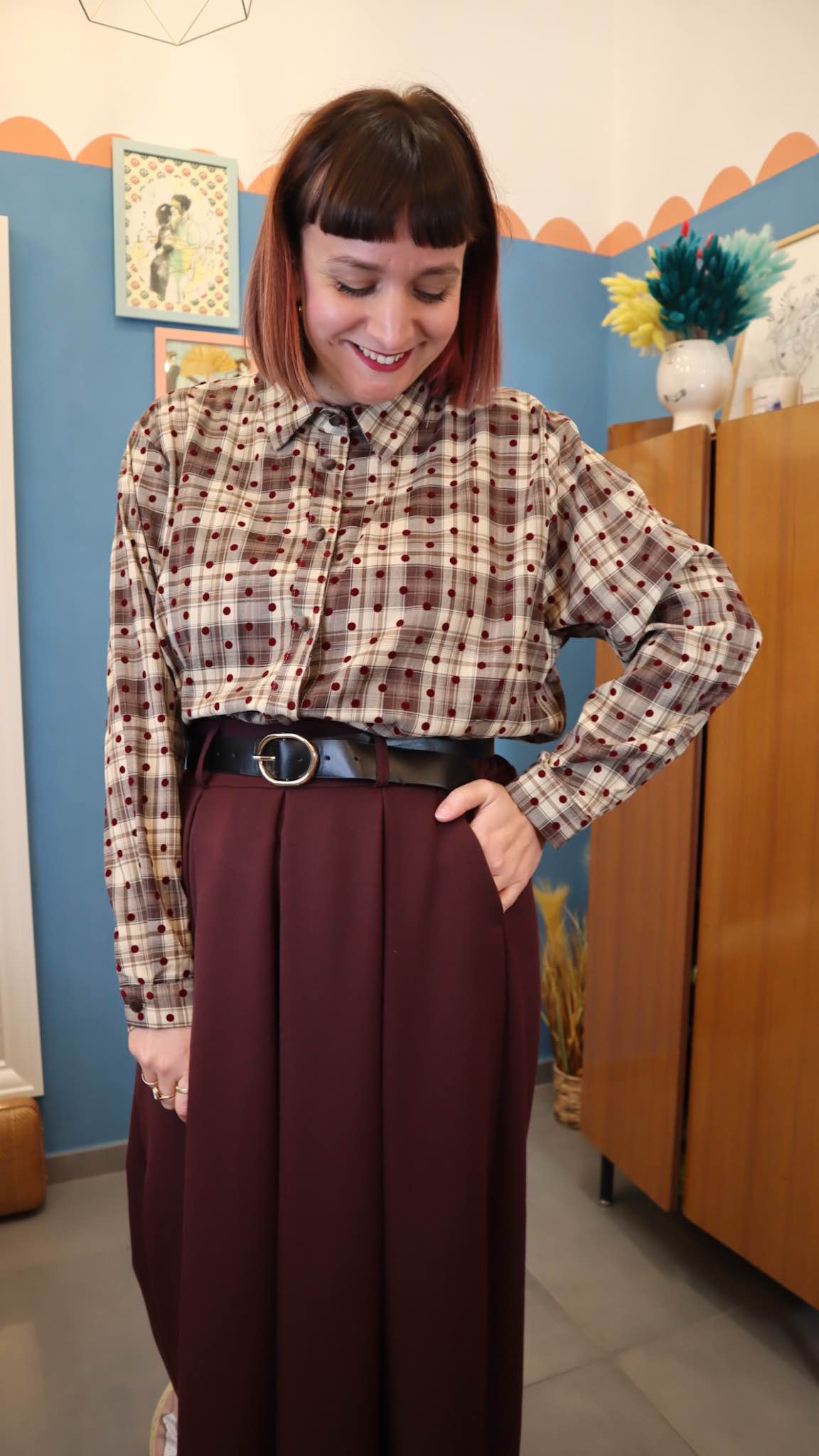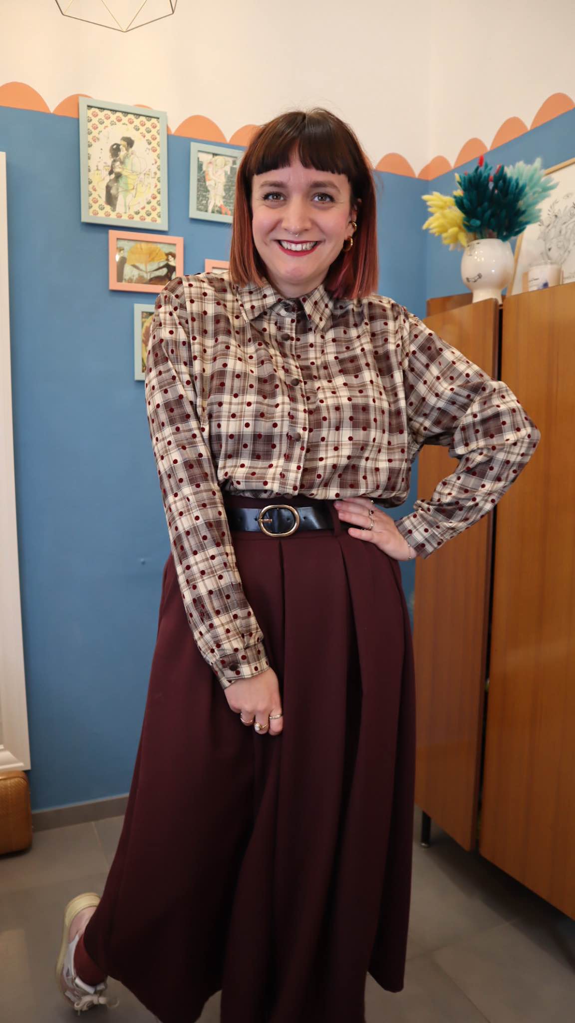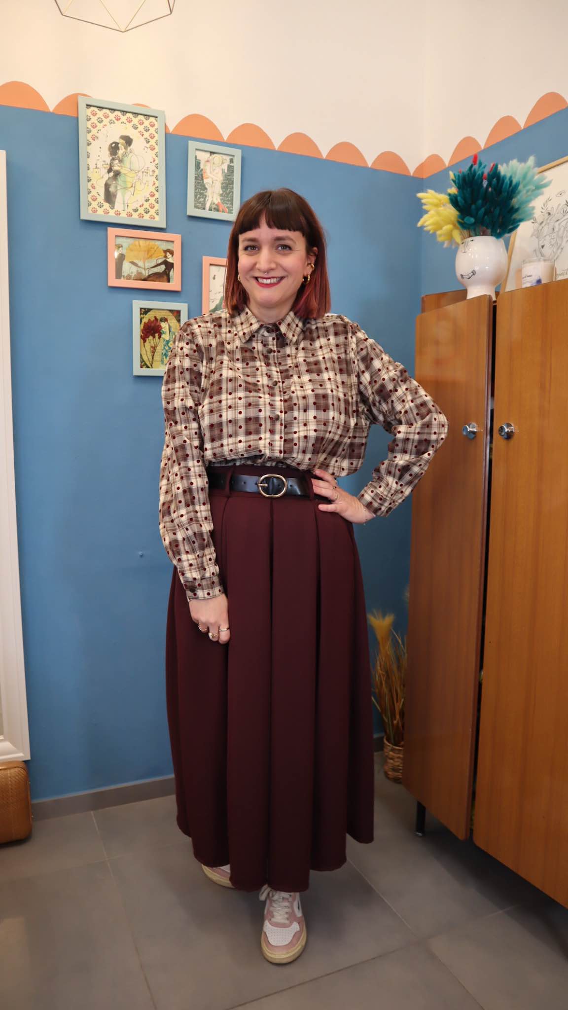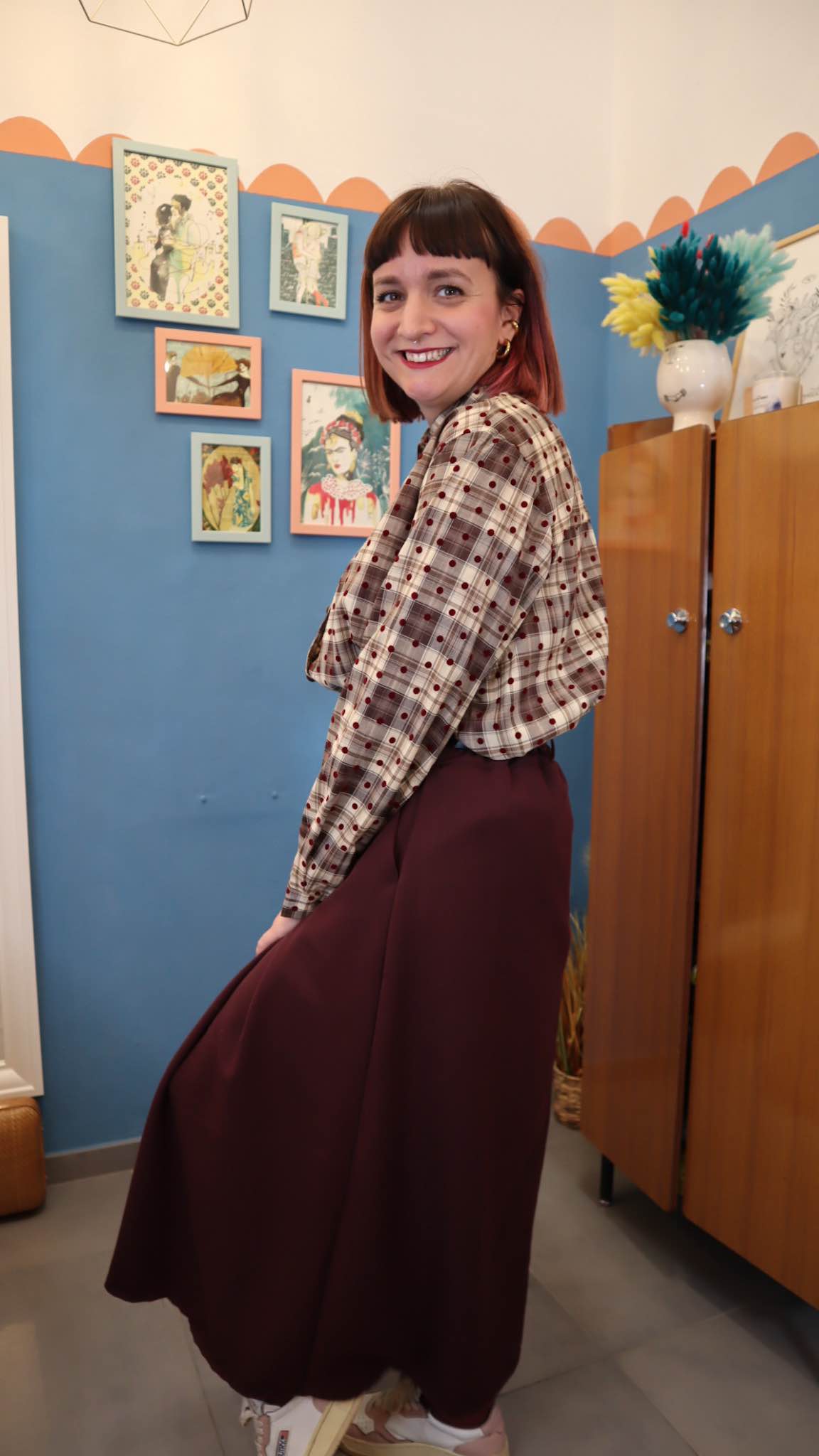 Gonna in poliestere.Elastico nella parte posteriore, con pence davanti