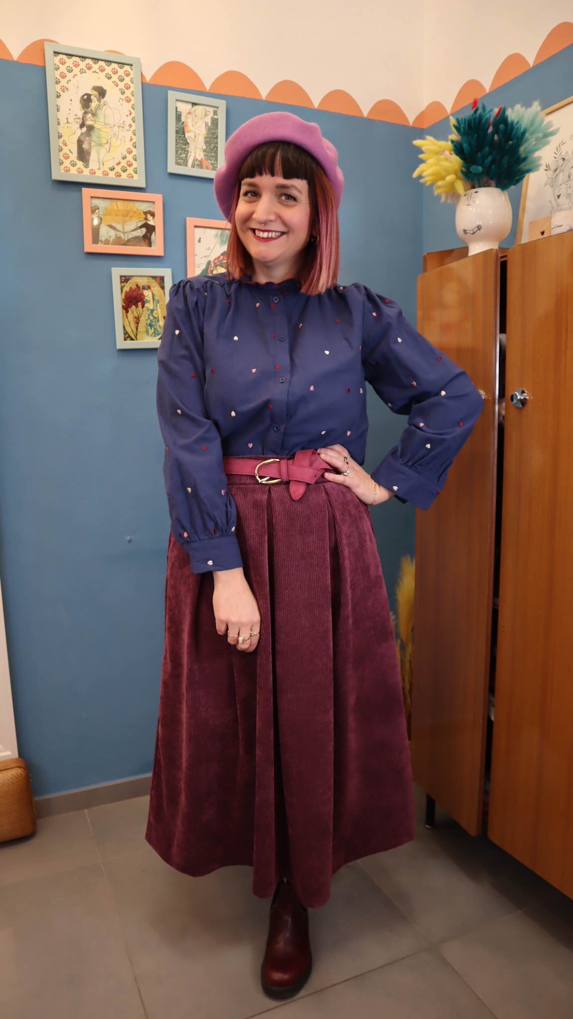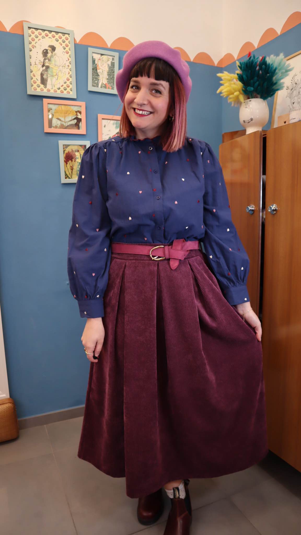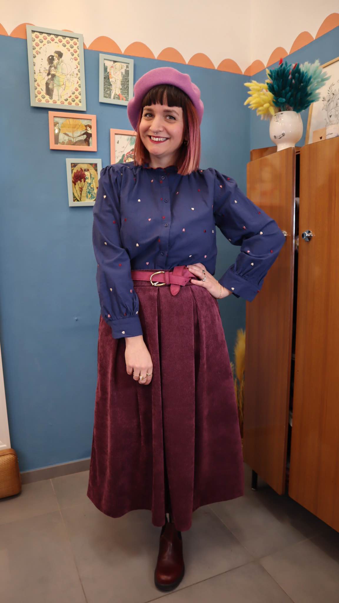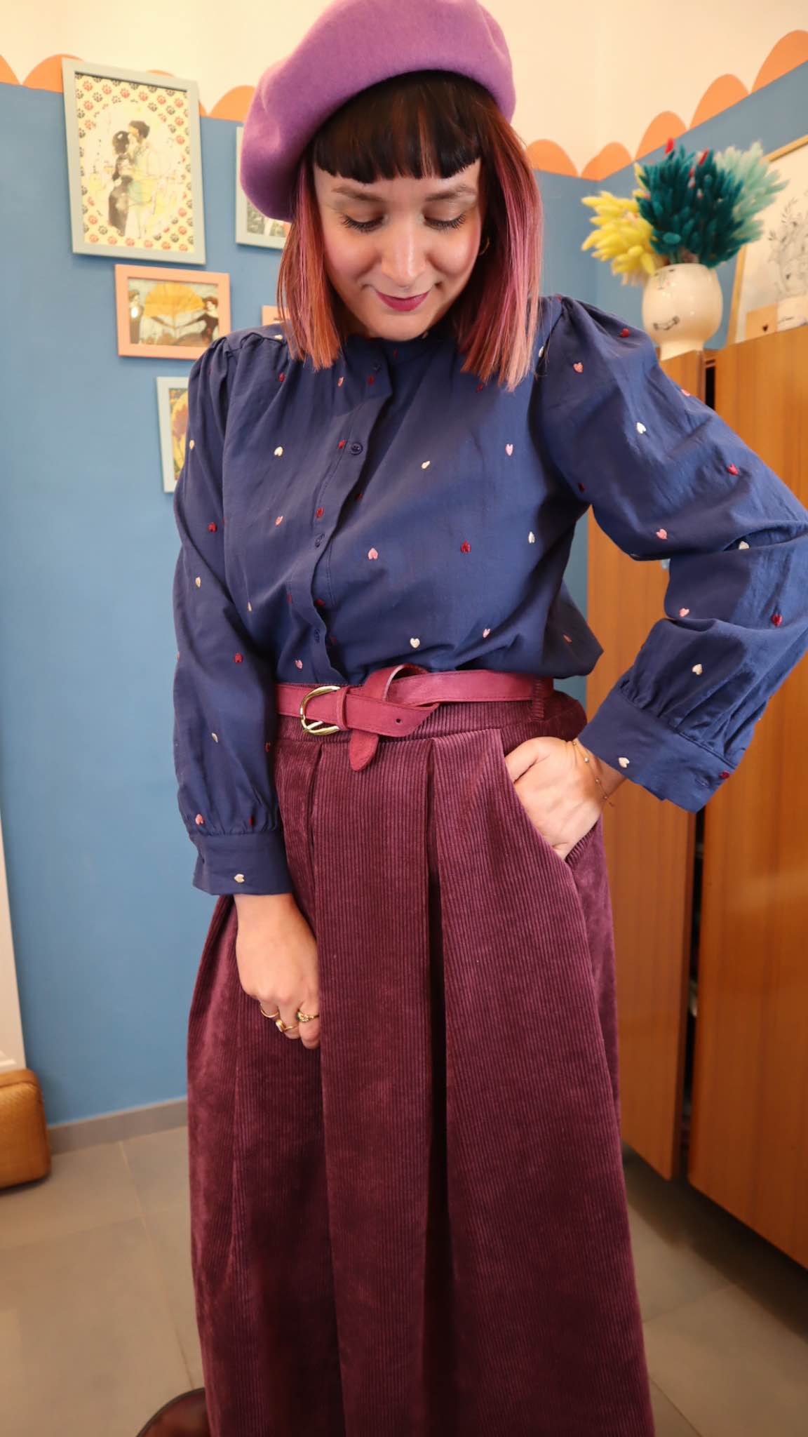 Gonna in velluto costa larga. Elastico in vita nella parte posteriore, tasche laterali