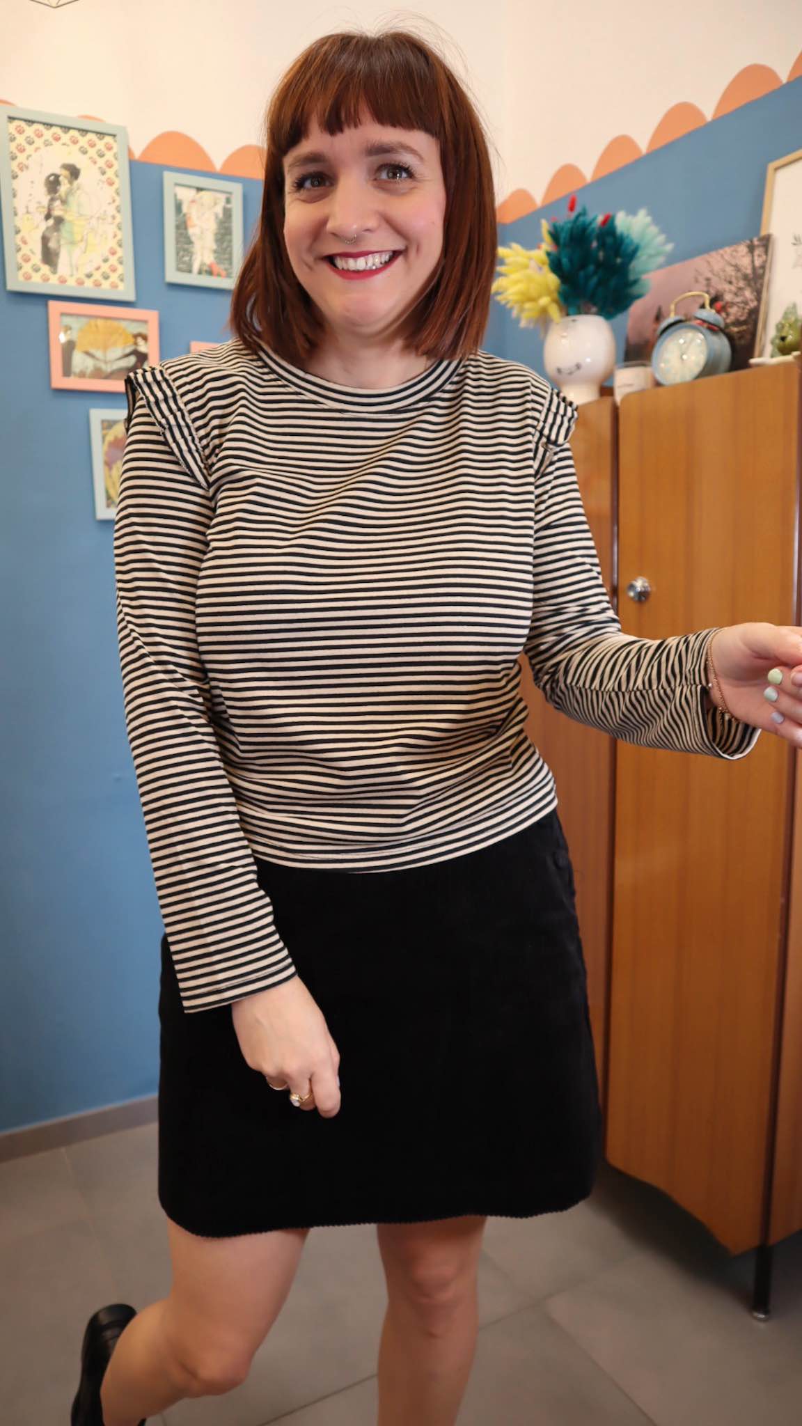 Maglia in 48%cotone 47% poliestere 5% elastane.Dettagio Rouches nel giro spalla