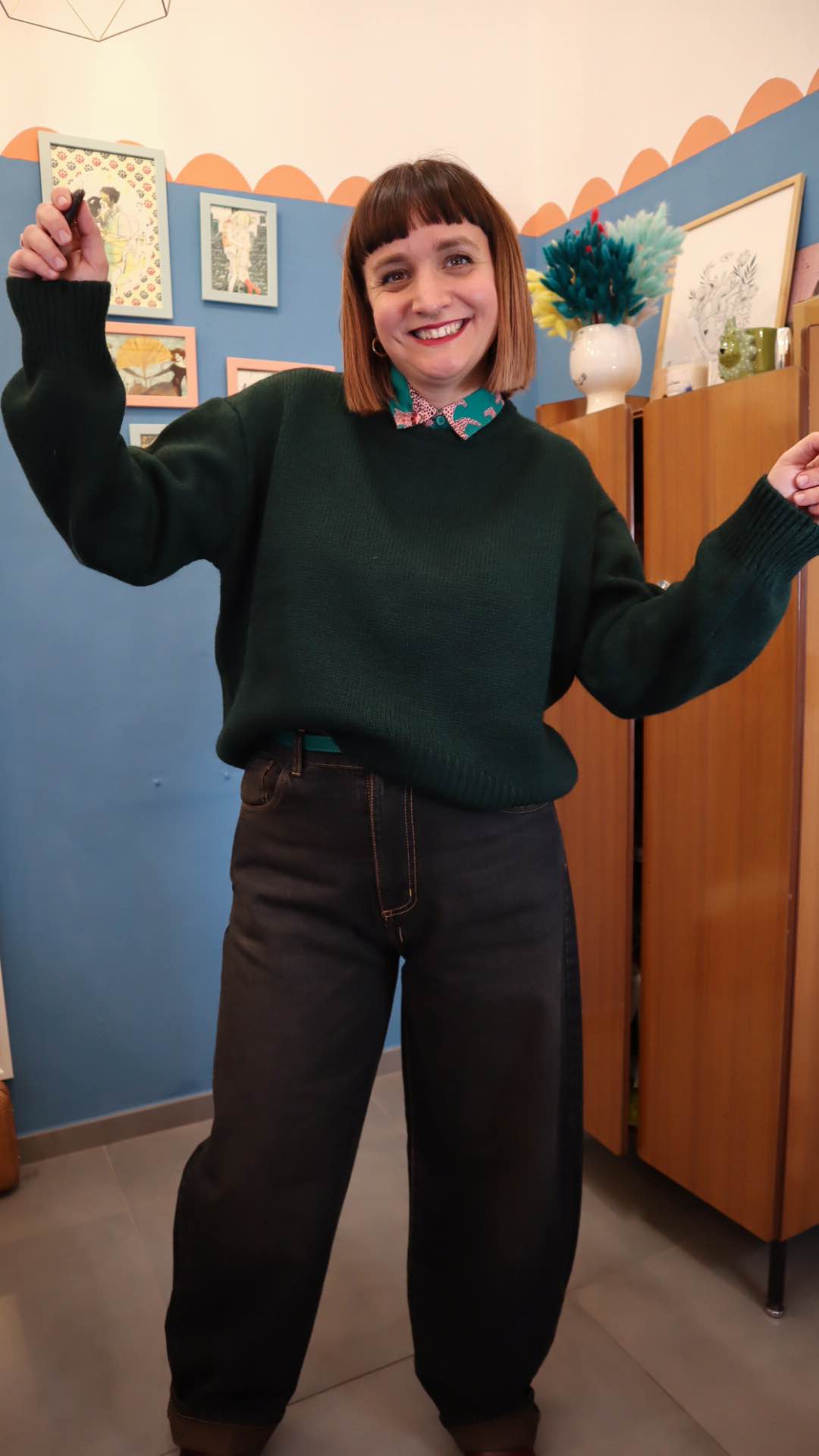 Maglione in acrilico con 15% di lana e alpaca.Modello crop con trama a treccia.