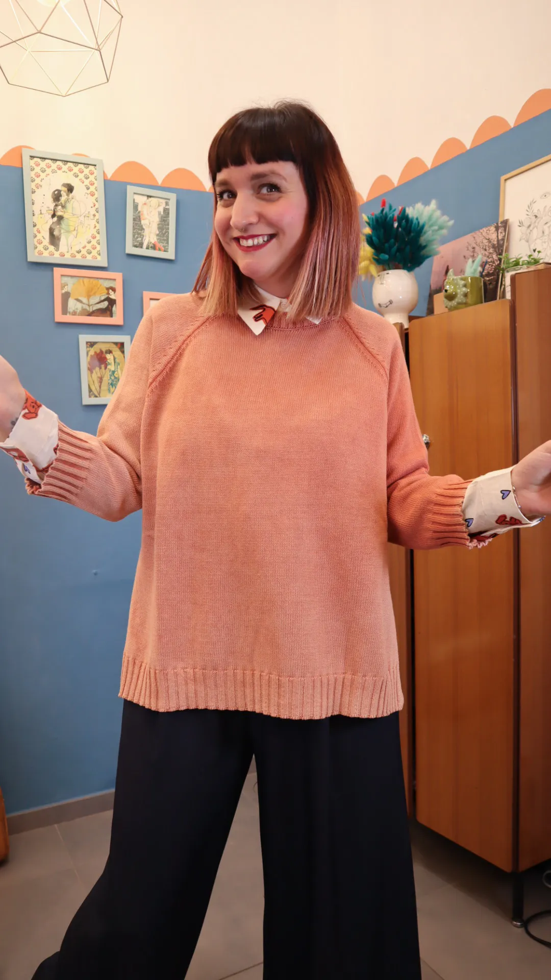 Maglione in cotone con spacchi laterali. Lavaggio effetto invecchiato