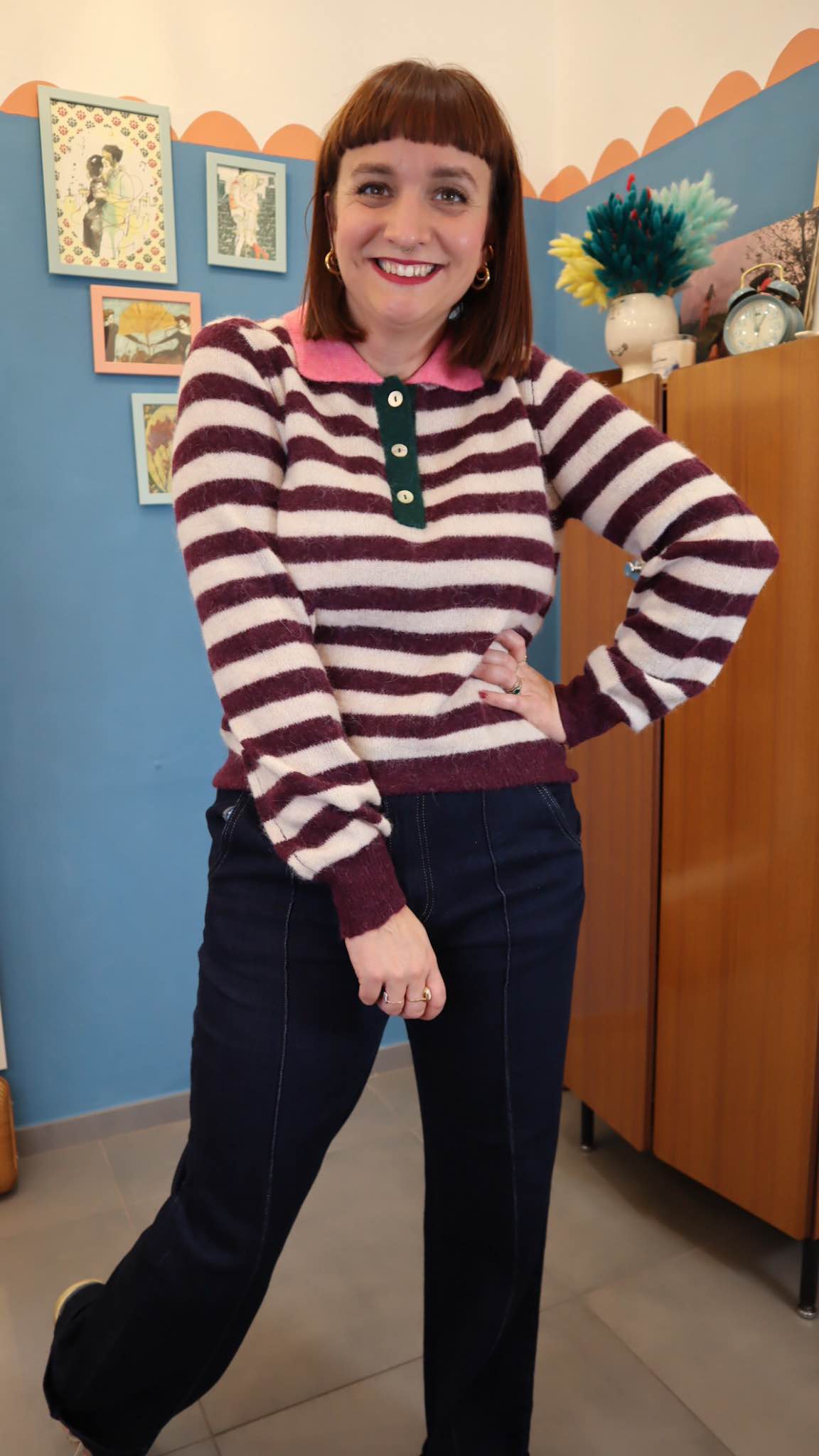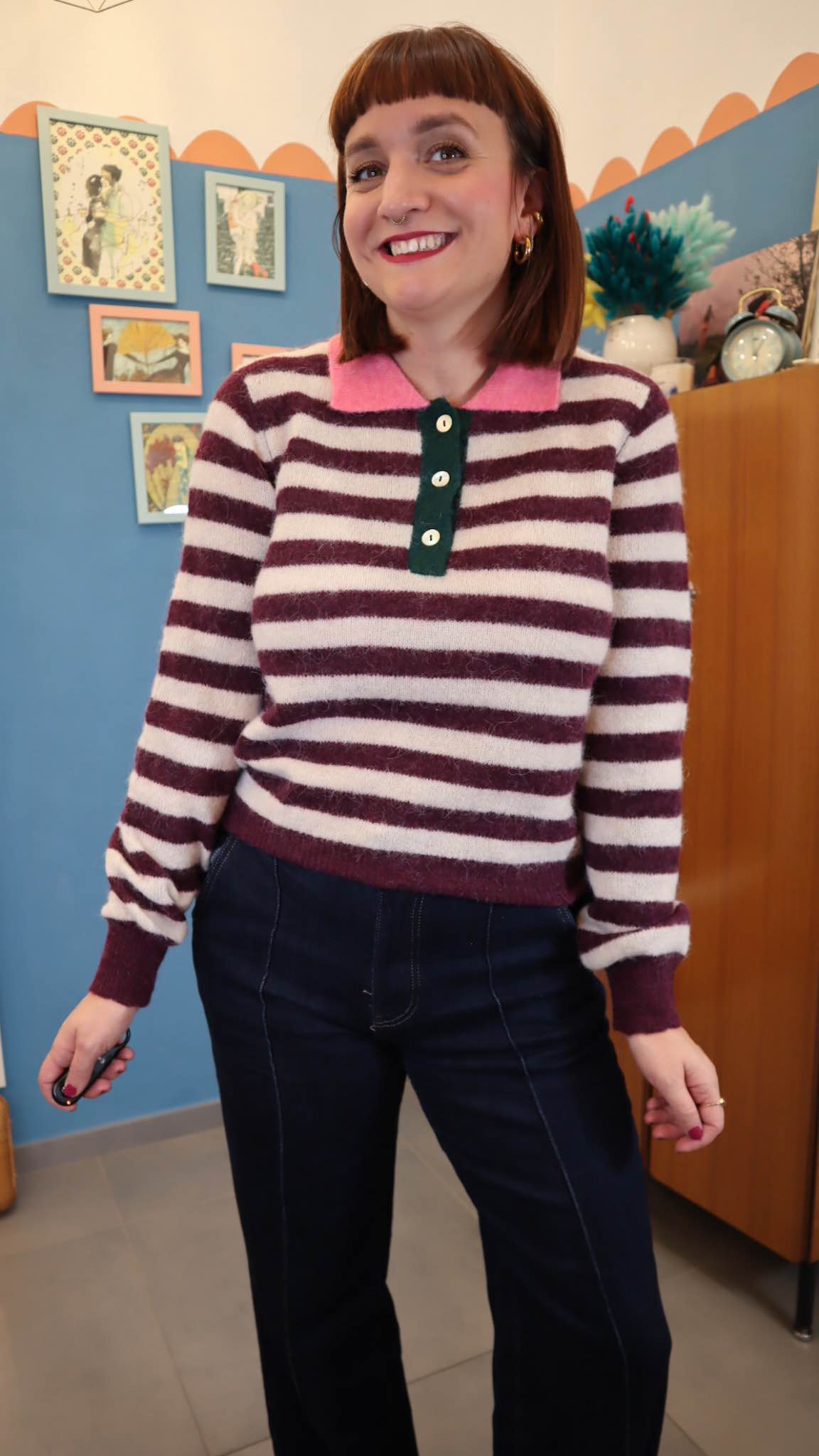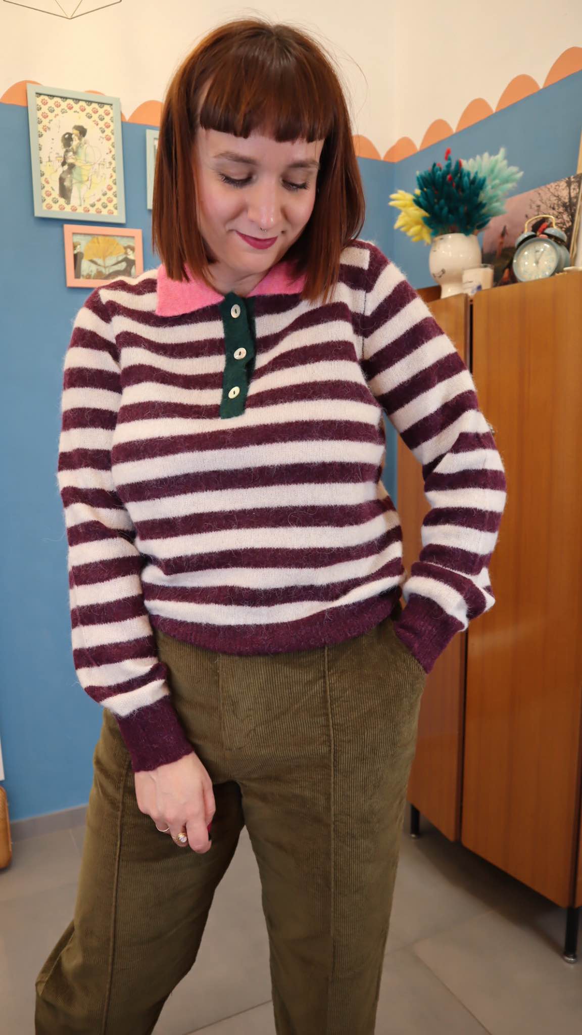 Maglione con colletto a contrasto in 64% lana 36% poliestere