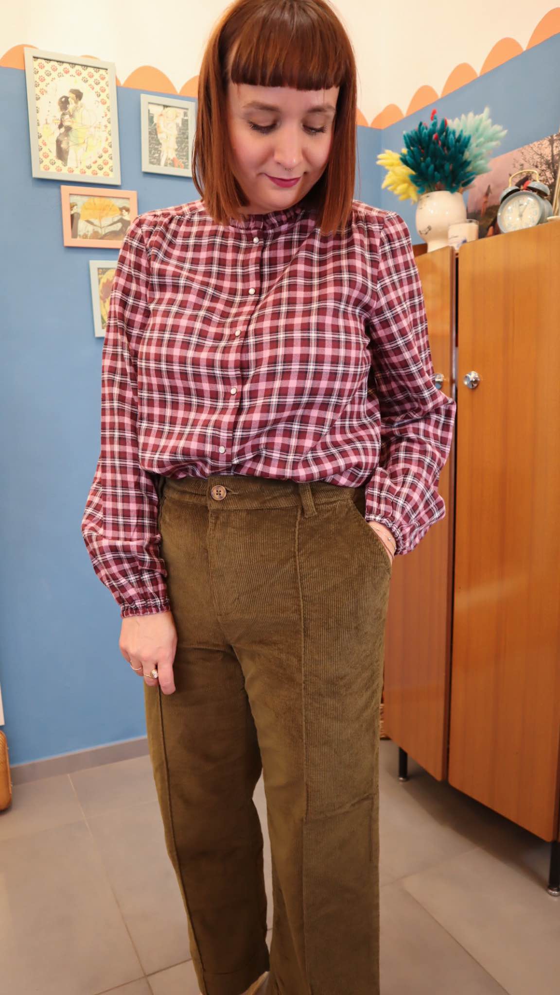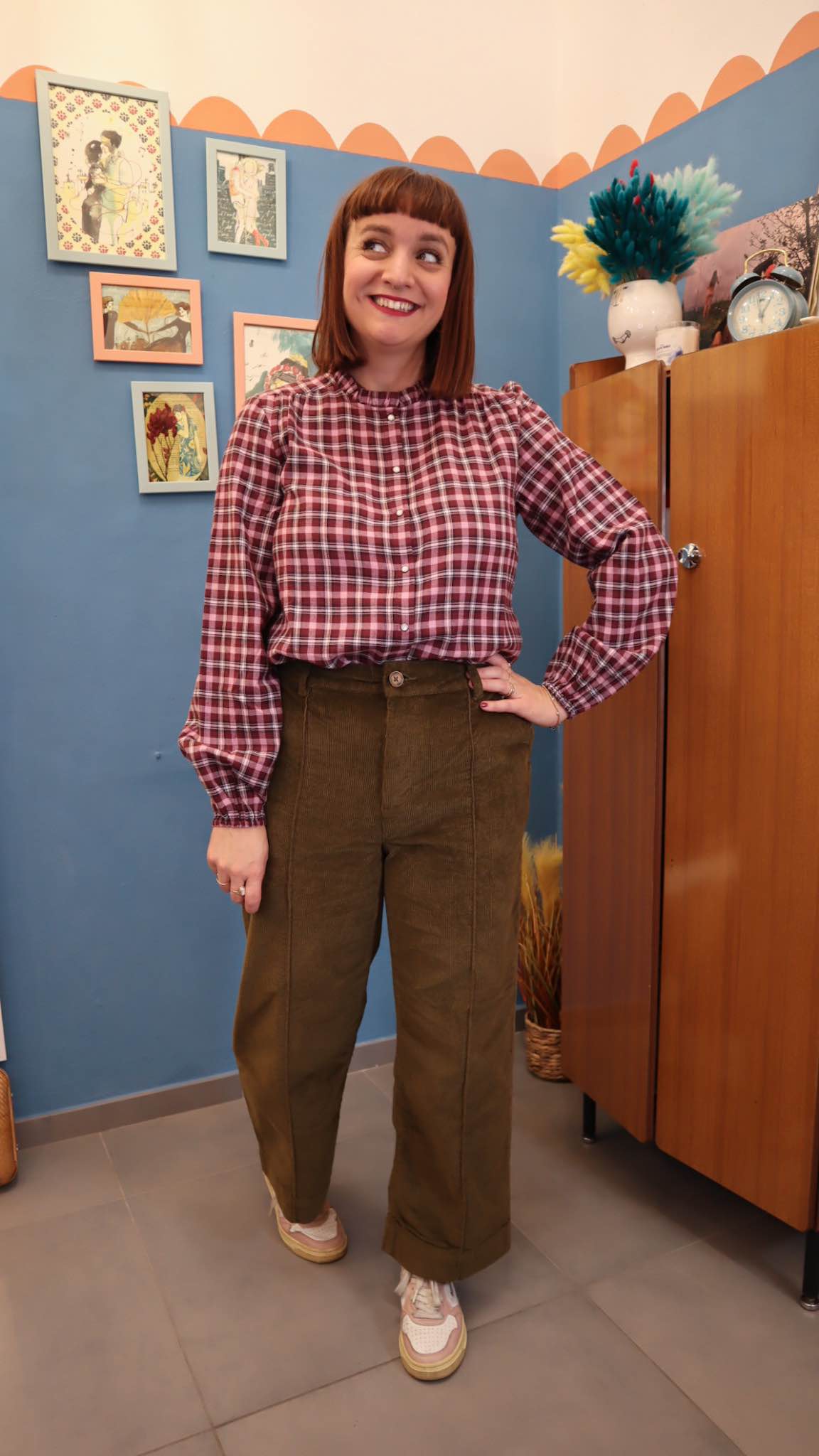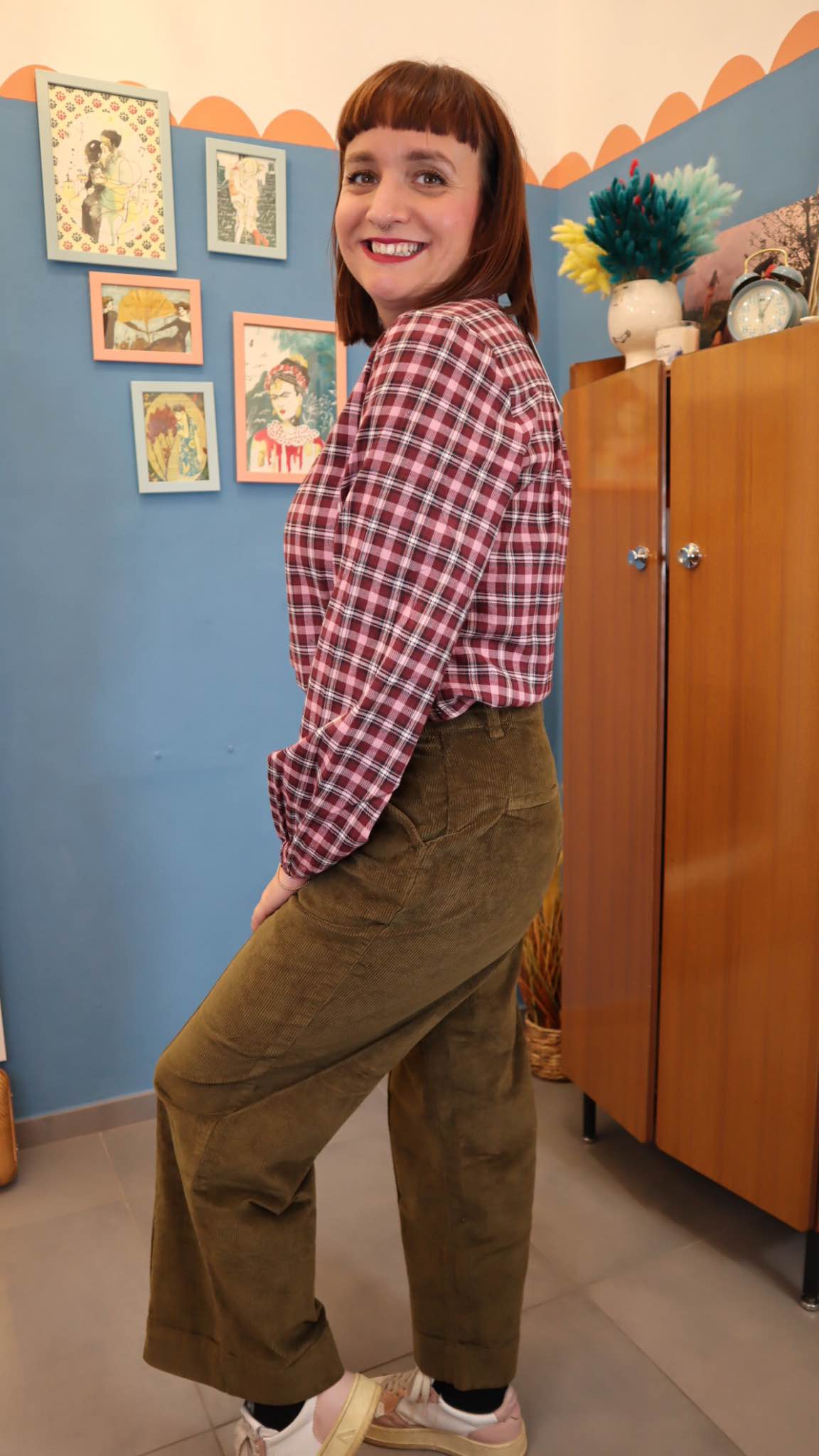 Pantalone in velluto millerighe. Modello Cropped. Tasche laterali. Tessuto confortevole in quanto รจ elasticizzato