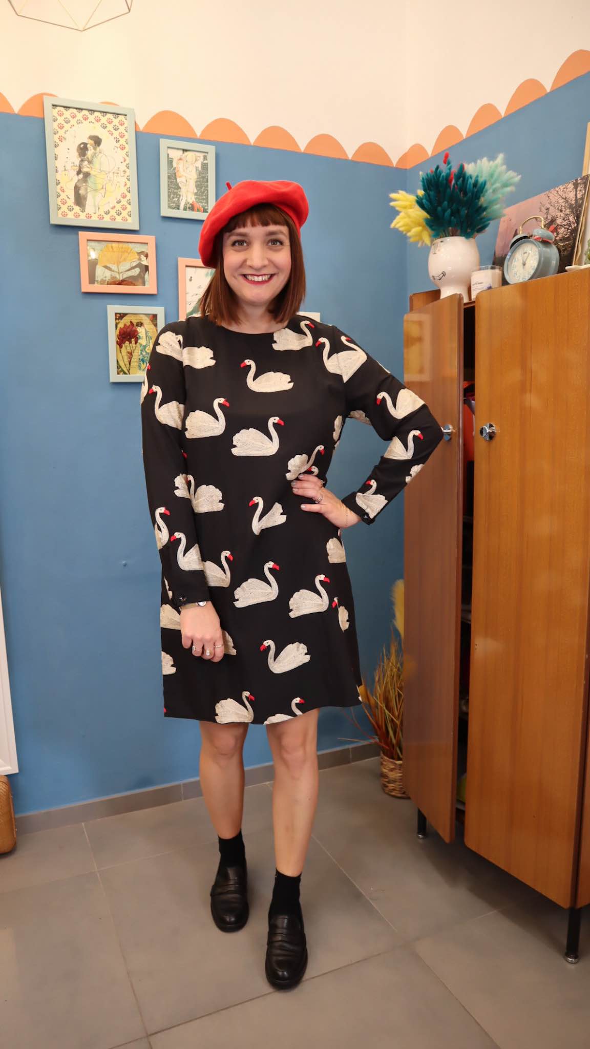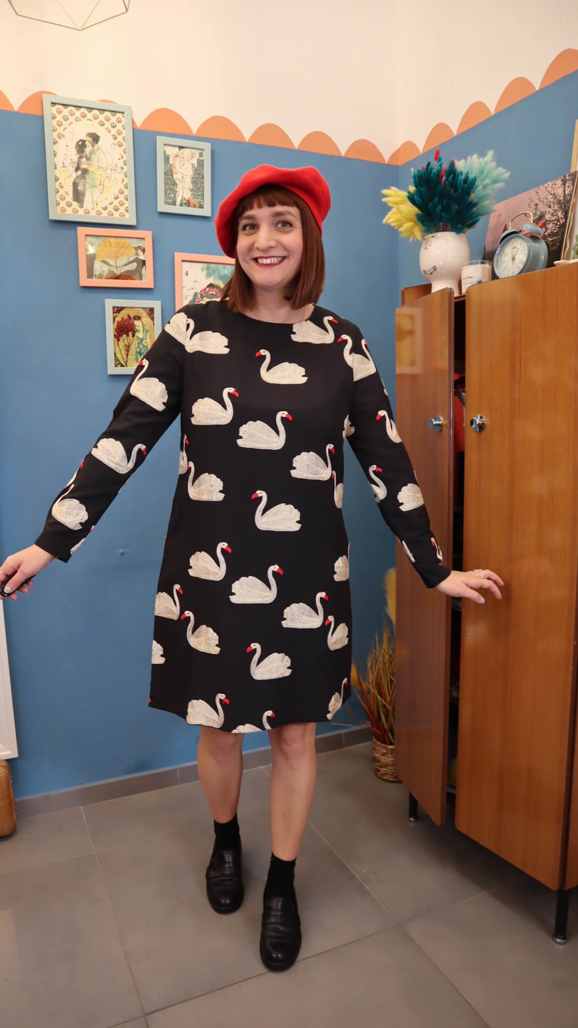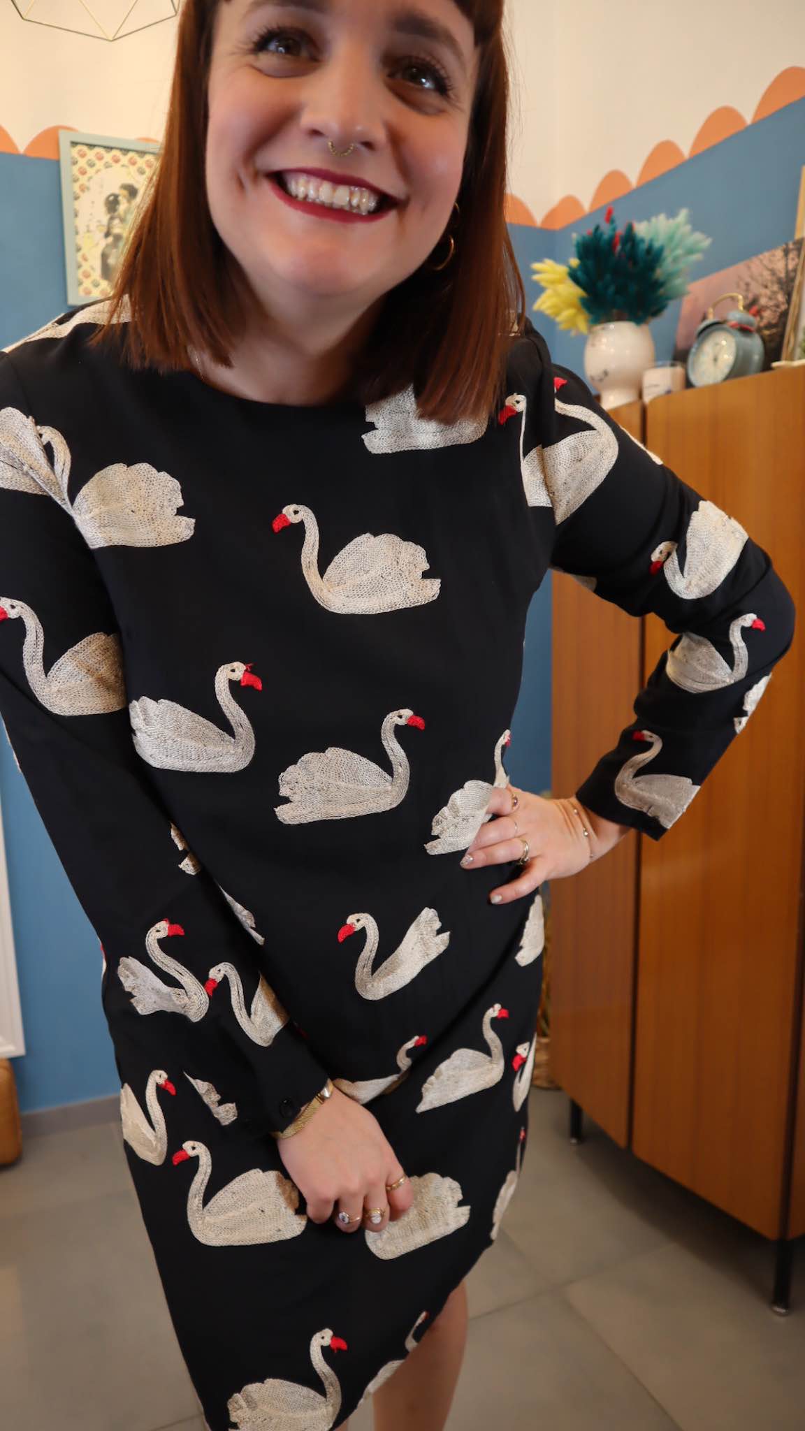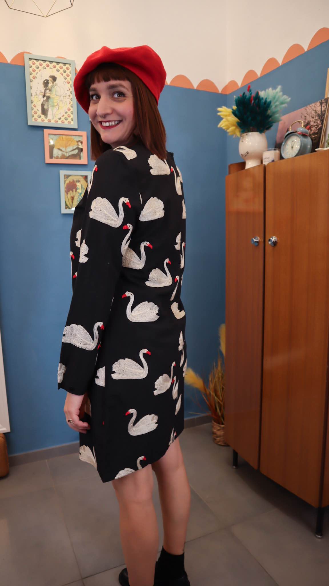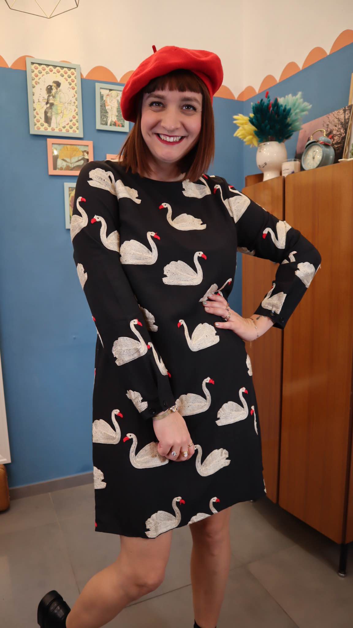 Vestito in 45% RAYON 55% POLIESTERE. Pattern cigni ricamato