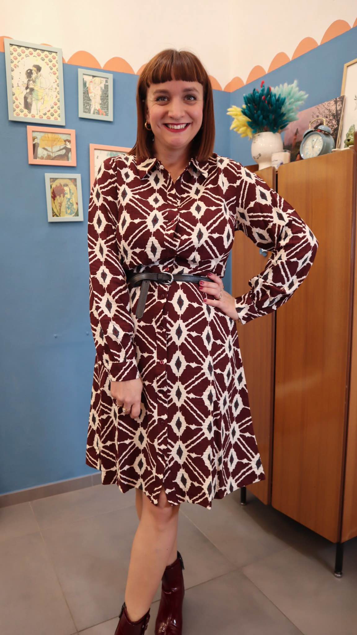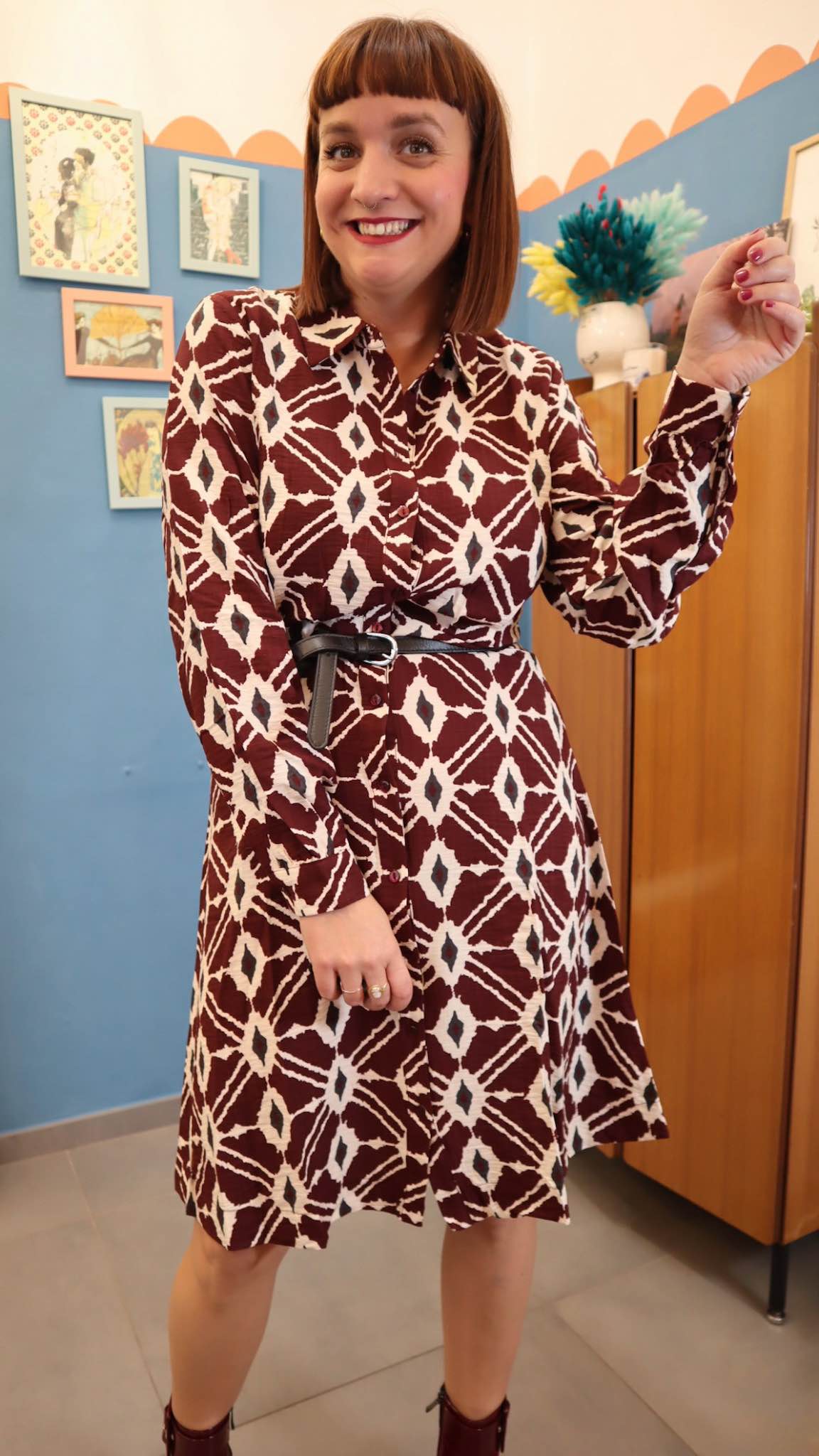 Vestito in 83% viscosa e 17% poliammide. Modello chemisier con punto vita segnato.